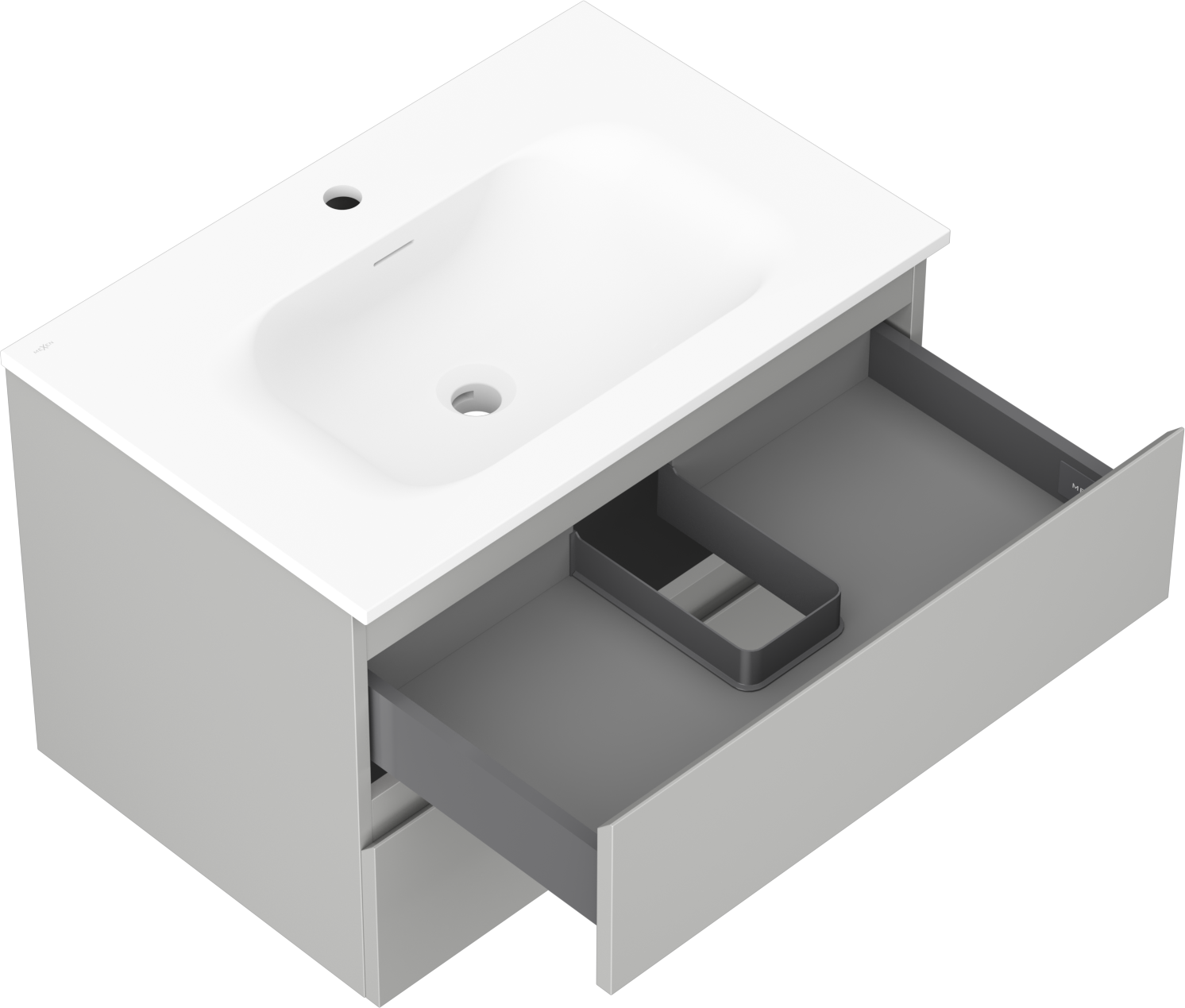 Изрезът в чекмеджето е проектиран по такъв начин, че да побере сифона, който е необходим в мивковите инсталации. Благодарение на това мебелът може да бъде монтиран напълно функционално, без да се налага отказване от пространството в чекмеджето заради инсталацията.