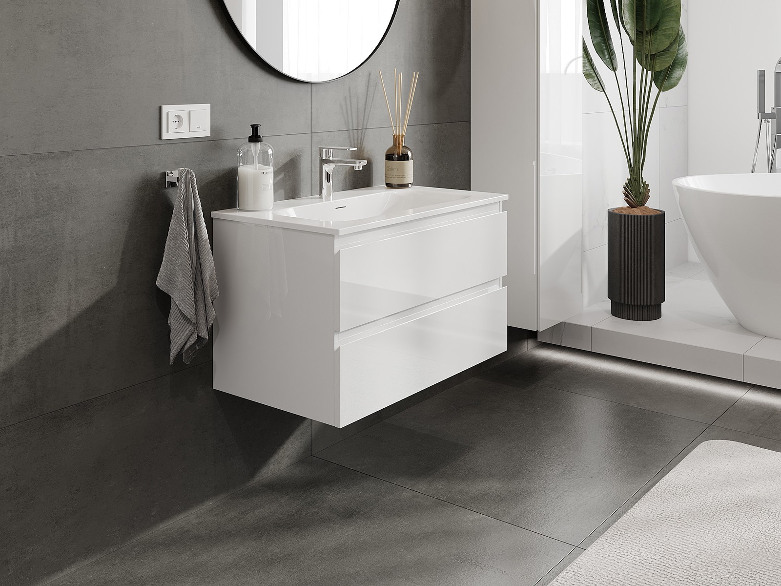 Корпусът на шкафа се доставя напълно сглобен, което означава максимално удобство и спестяване на време. Не е нужно да губите часове за сглобяване на мебела – просто го монтирайте на избраното място в банята. Това е идеалното решение за хора, които ценят бързия монтаж и незабавния ефект.