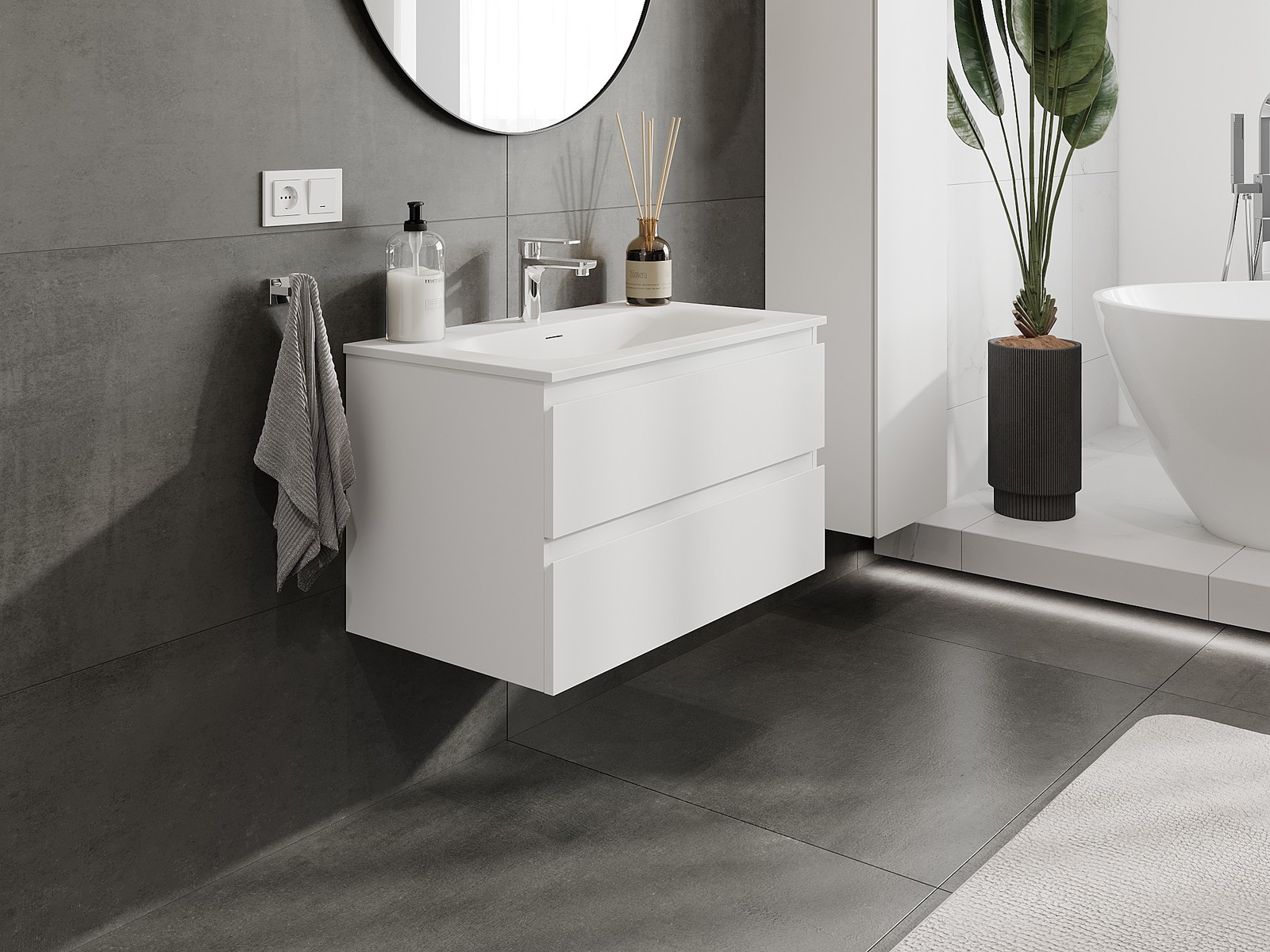 Корпусът на шкафа се доставя напълно сглобен, което означава максимално удобство и спестяване на време. Не е нужно да губите часове за сглобяване на мебела – просто го монтирайте на избраното място в банята. Това е идеалното решение за хора, които ценят бързия монтаж и незабавния ефект.