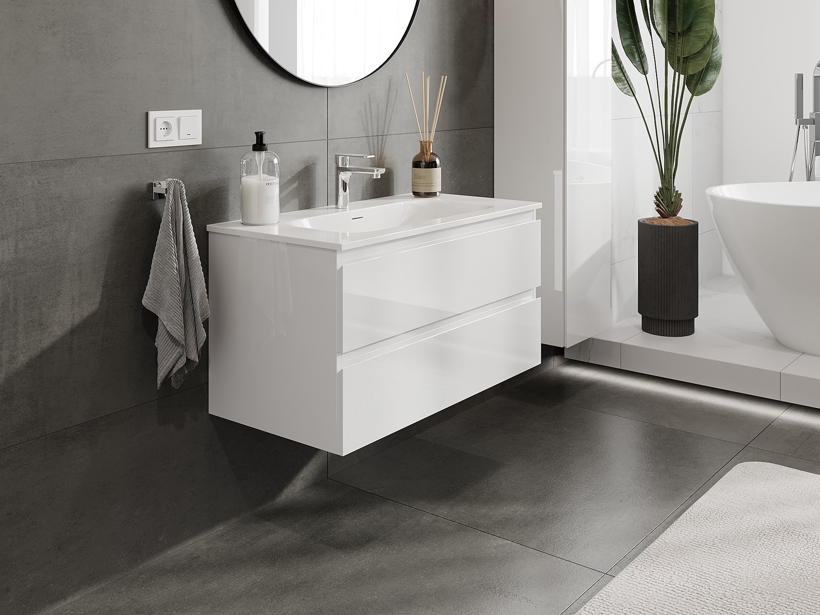 Корпусът на шкафа се доставя напълно сглобен, което означава максимално удобство и спестяване на време. Не е нужно да губите часове за сглобяване на мебела – просто го монтирайте на избраното място в банята. Това е идеалното решение за хора, които ценят бързия монтаж и незабавния ефект.