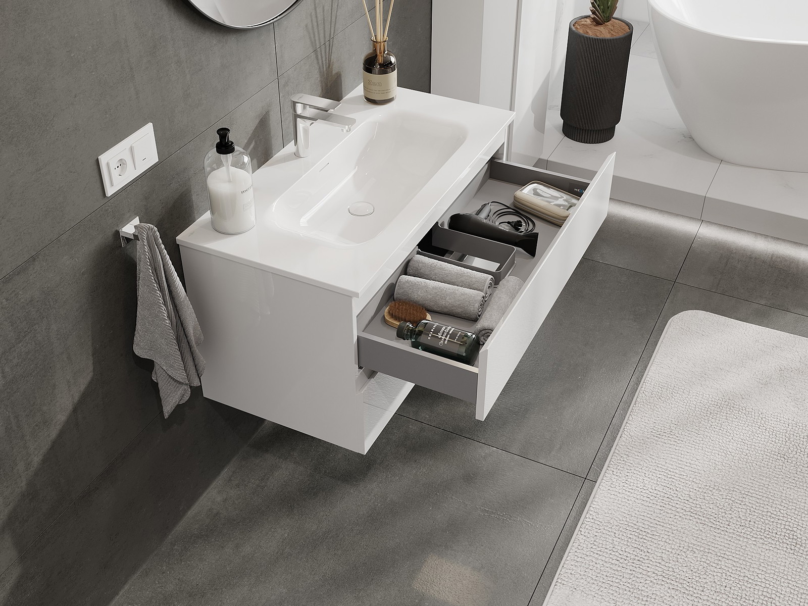 Нашите модулни мебели за баня могат да се комбинират в различни цветови конфигурации, което позволява пълна персонализация. Може да се избере както външният вид, така и функциите на отделните елементи, което позволява съчетаване на мебелите със собствените стилови и функционални предпочитания.