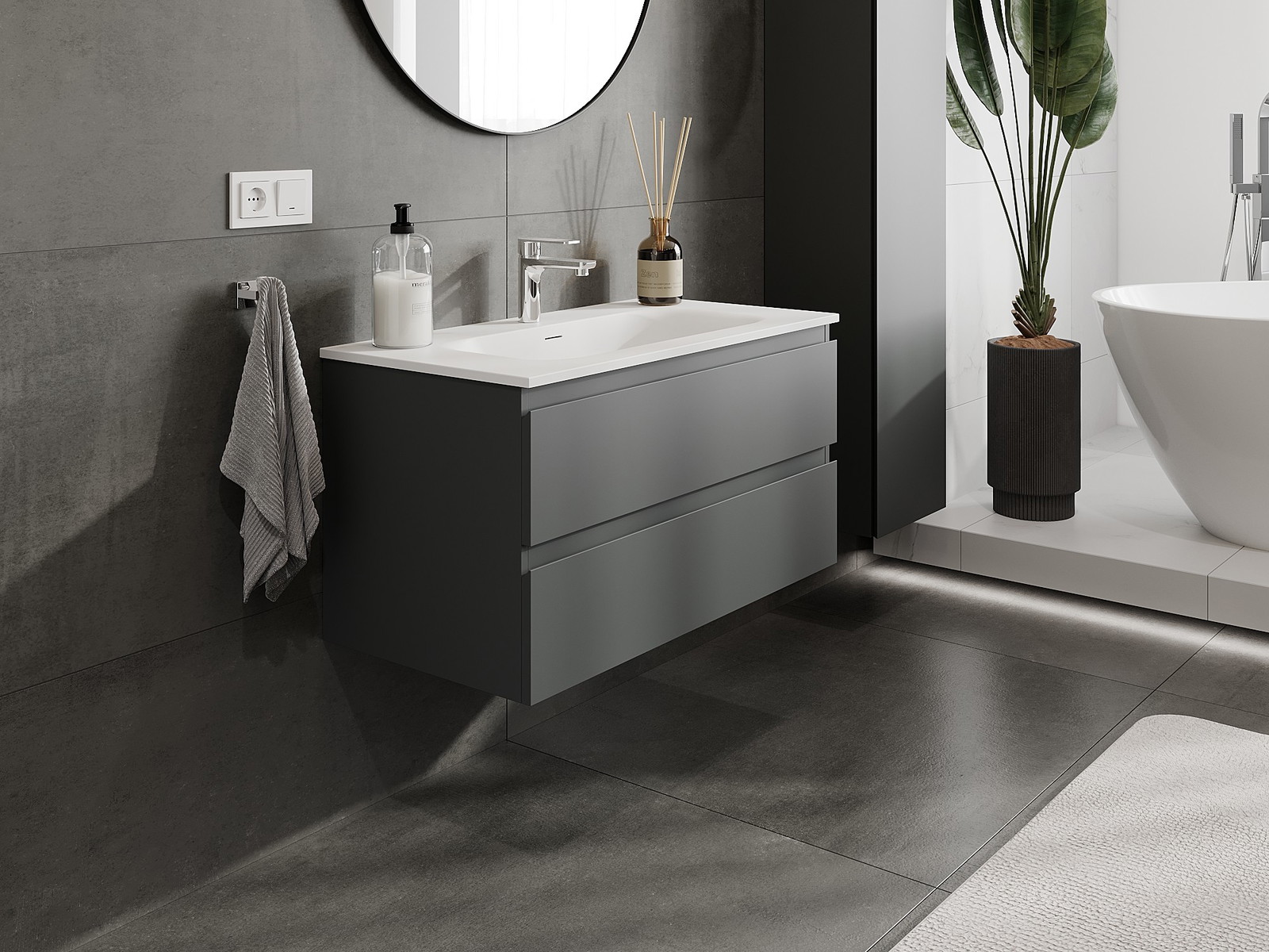 Корпусът на шкафа се доставя напълно сглобен, което означава максимално удобство и спестяване на време. Не е нужно да губите часове за сглобяване на мебела – просто го монтирайте на избраното място в банята. Това е идеалното решение за хора, които ценят бързия монтаж и незабавния ефект.