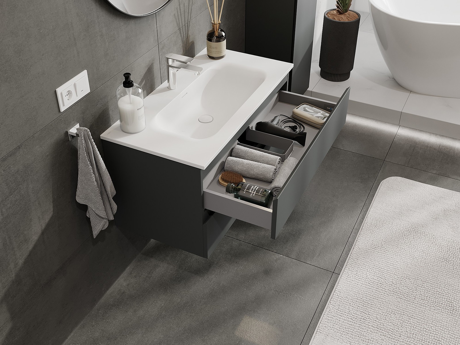 Нашите модулни мебели за баня могат да се комбинират в различни цветови конфигурации, което позволява пълна персонализация. Може да се избере както външният вид, така и функциите на отделните елементи, което позволява съчетаване на мебелите със собствените стилови и функционални предпочитания.