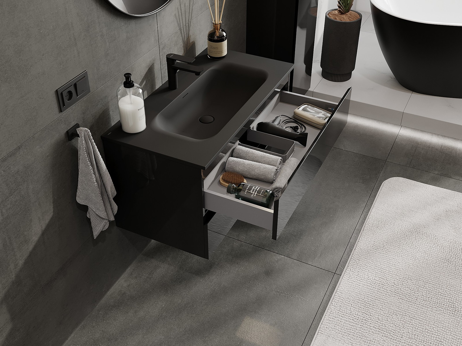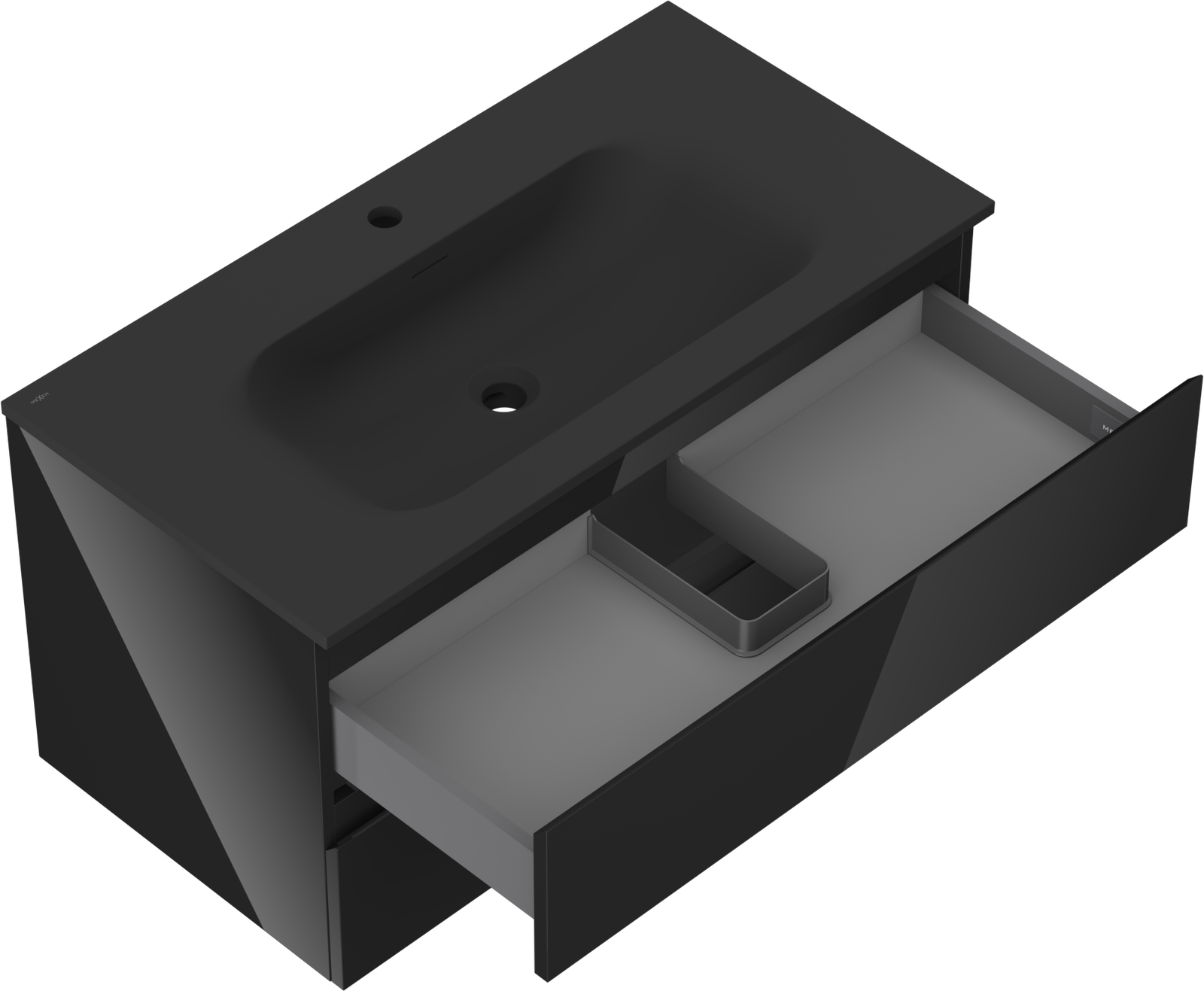 Изрезът в чекмеджето е проектиран по такъв начин, че да побере сифона, който е необходим в мивковите инсталации. Благодарение на това мебелът може да бъде монтиран напълно функционално, без да се налага отказване от пространството в чекмеджето заради инсталацията.