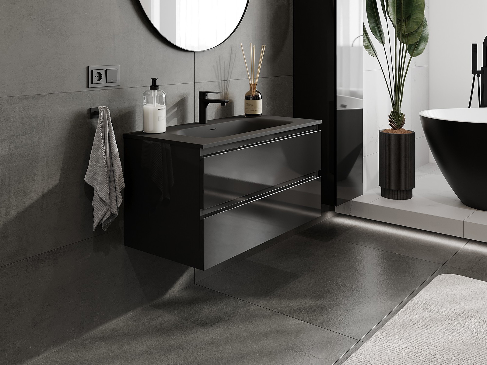Корпусът на шкафа се доставя напълно сглобен, което означава максимално удобство и спестяване на време. Не е нужно да губите часове за сглобяване на мебела – просто го монтирайте на избраното място в банята. Това е идеалното решение за хора, които ценят бързия монтаж и незабавния ефект.