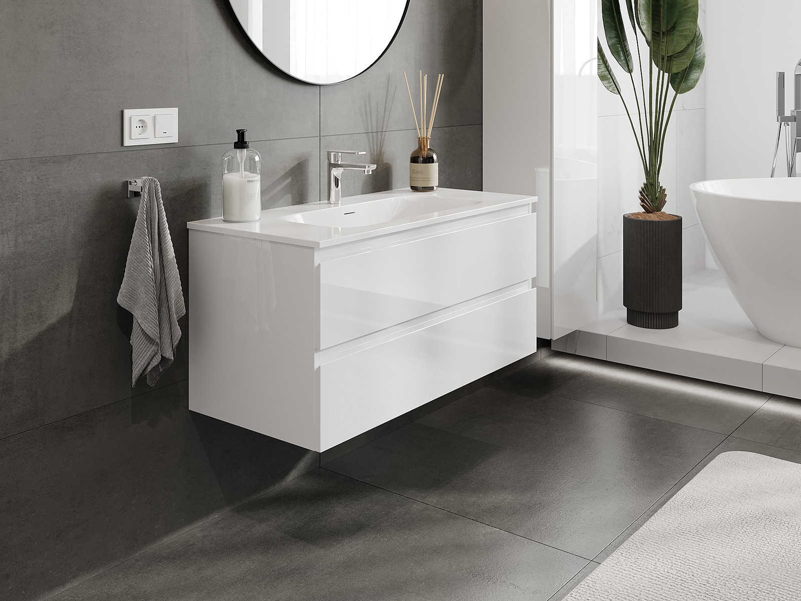 Корпусът на шкафа се доставя напълно сглобен, което означава максимално удобство и спестяване на време. Не е нужно да губите часове за сглобяване на мебела – просто го монтирайте на избраното място в банята. Това е идеалното решение за хора, които ценят бързия монтаж и незабавния ефект.
