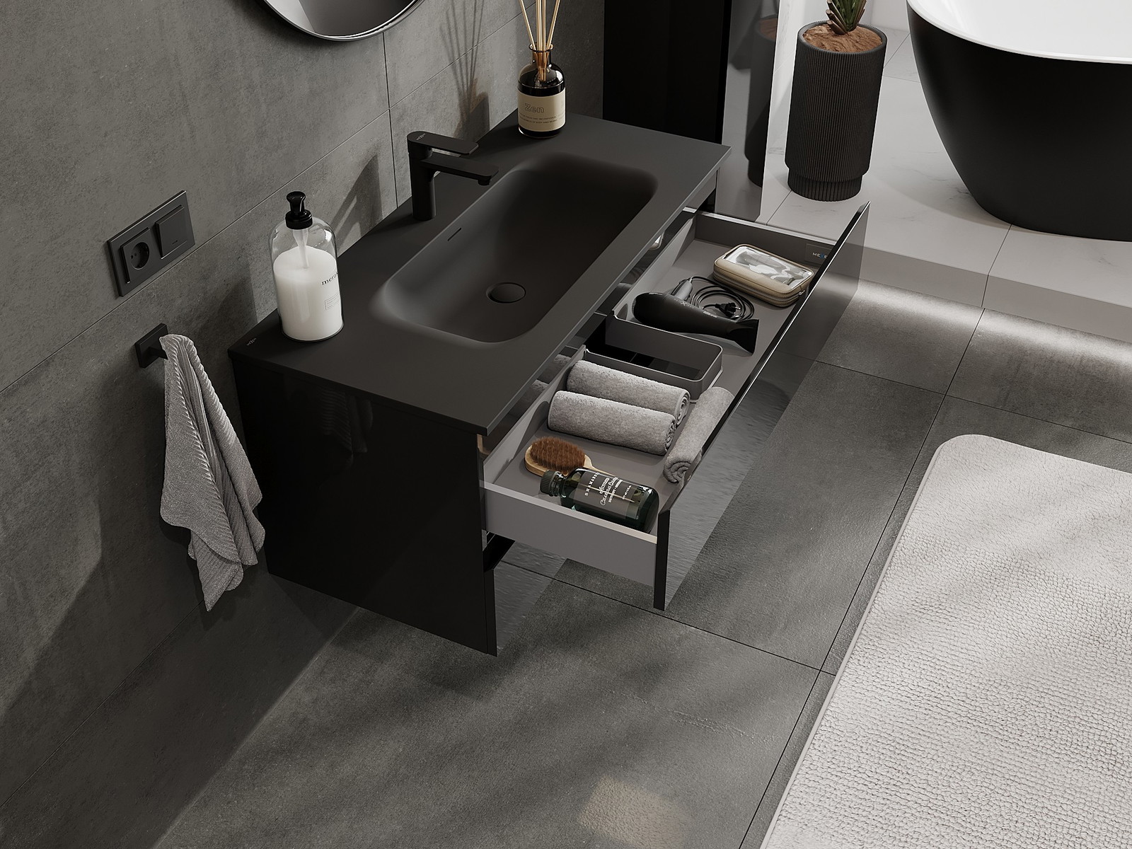 Нашите модулни мебели за баня могат да се комбинират в различни цветови конфигурации, което позволява пълна персонализация. Може да се избере както външният вид, така и функциите на отделните елементи, което позволява съчетаване на мебелите със собствените стилови и функционални предпочитания.