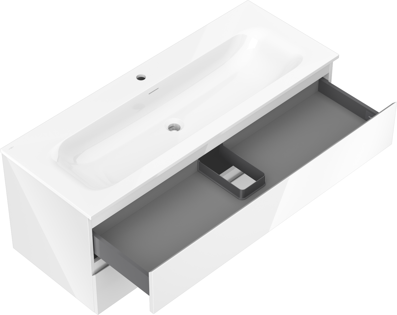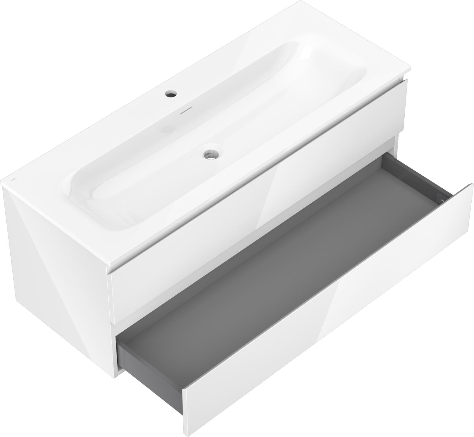 Изрезът в чекмеджето е проектиран по такъв начин, че да побере сифона, който е необходим в мивковите инсталации. Благодарение на това мебелът може да бъде монтиран напълно функционално, без да се налага отказване от пространството в чекмеджето заради инсталацията.