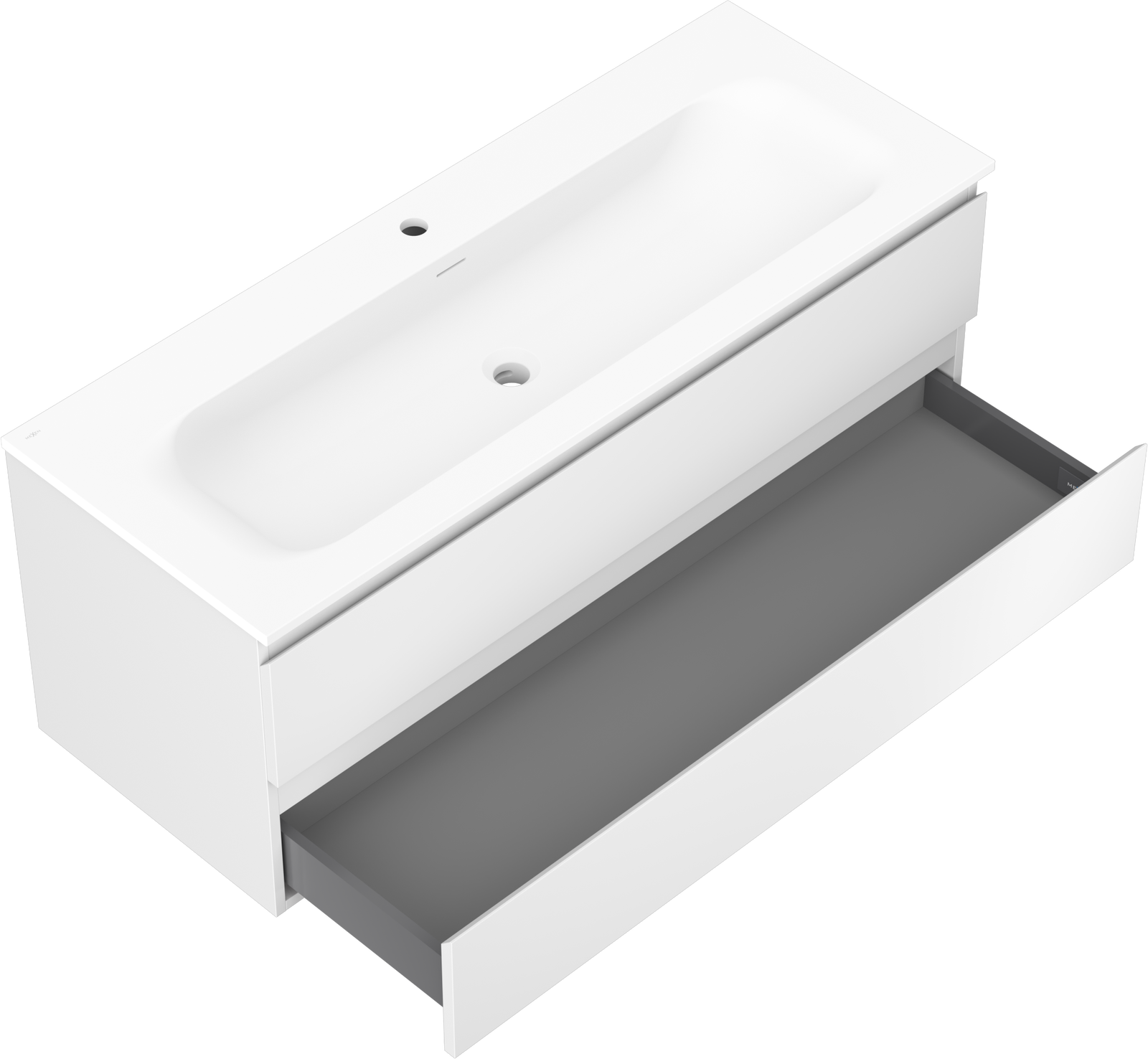 Изрезът в чекмеджето е проектиран по такъв начин, че да побере сифона, който е необходим в мивковите инсталации. Благодарение на това мебелът може да бъде монтиран напълно функционално, без да се налага отказване от пространството в чекмеджето заради инсталацията.