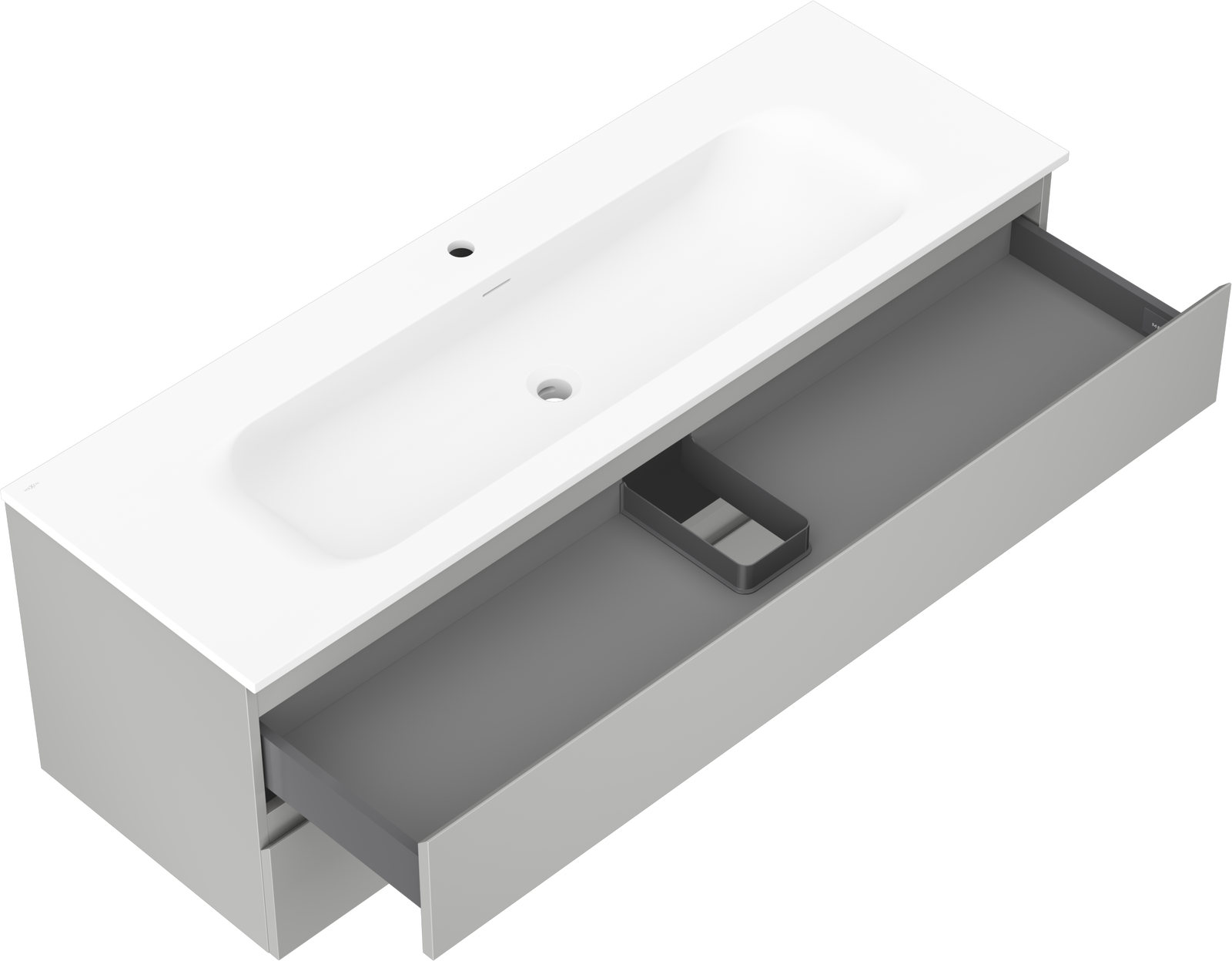 Изрезът в чекмеджето е проектиран по такъв начин, че да побере сифона, който е необходим в мивковите инсталации. Благодарение на това мебелът може да бъде монтиран напълно функционално, без да се налага отказване от пространството в чекмеджето заради инсталацията.