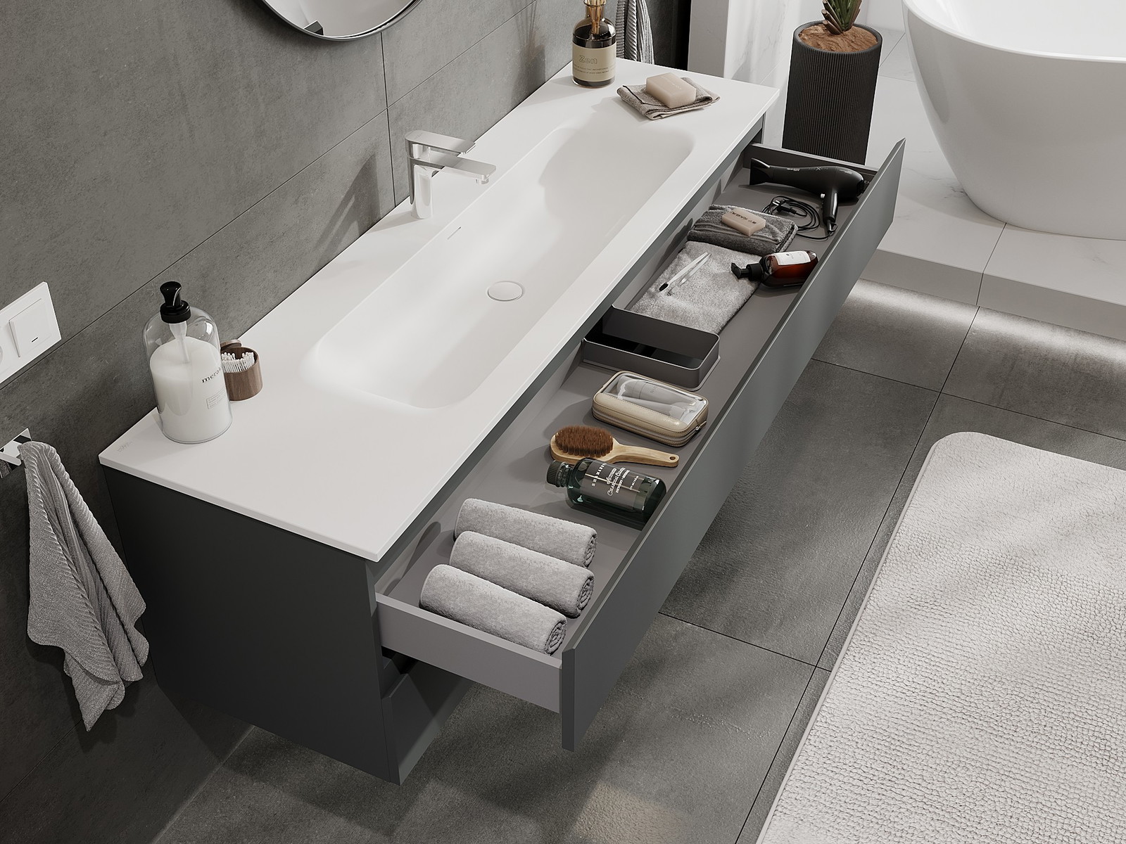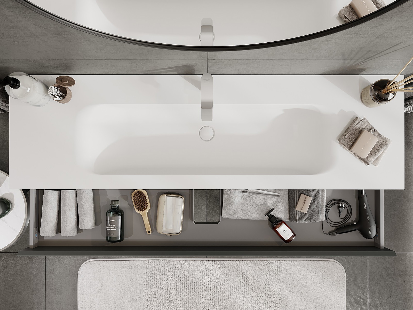 Нашите модулни мебели за баня могат да се комбинират в различни цветови конфигурации, което позволява пълна персонализация. Може да се избере както външният вид, така и функциите на отделните елементи, което позволява съчетаване на мебелите със собствените стилови и функционални предпочитания.