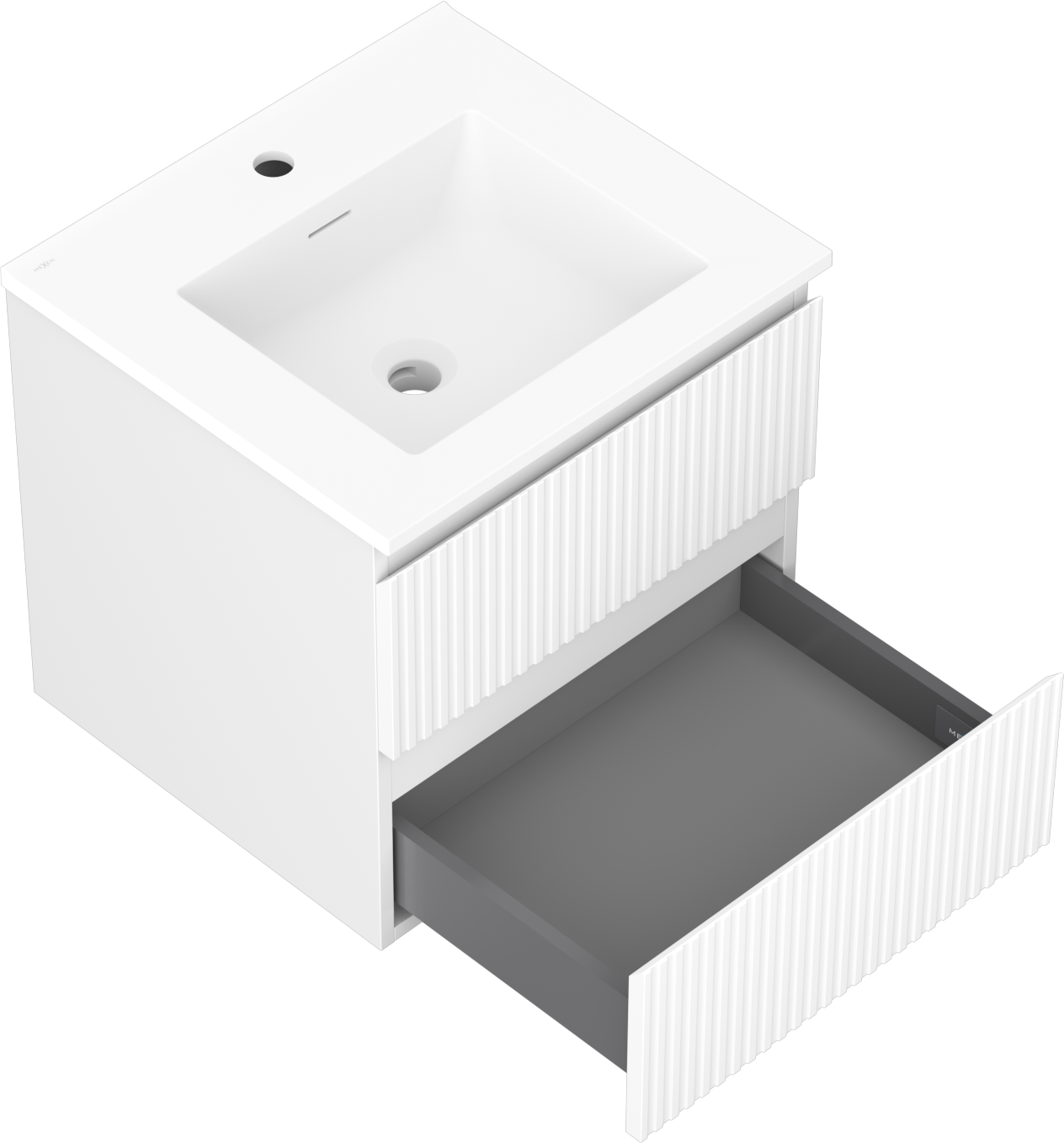 Mexen Rivel баня шкаф 50 см с мивка Otis, 2 чекмеджета, рифлован, бял мат - 91A20-05047-2-BFF01-W18M01