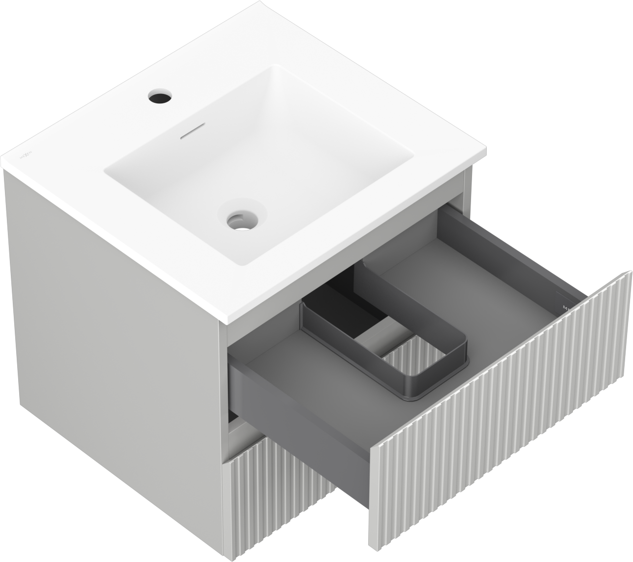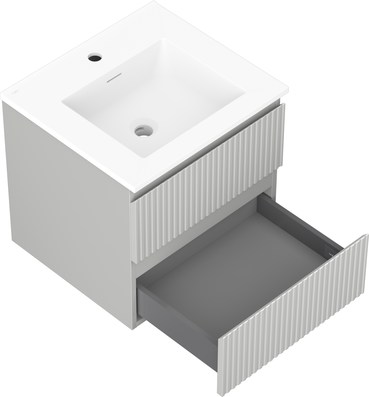 Mexen Rivel 50 см шкаф за баня с мивка Otis, 2 чекмеджета, релефен, сив мат/бял