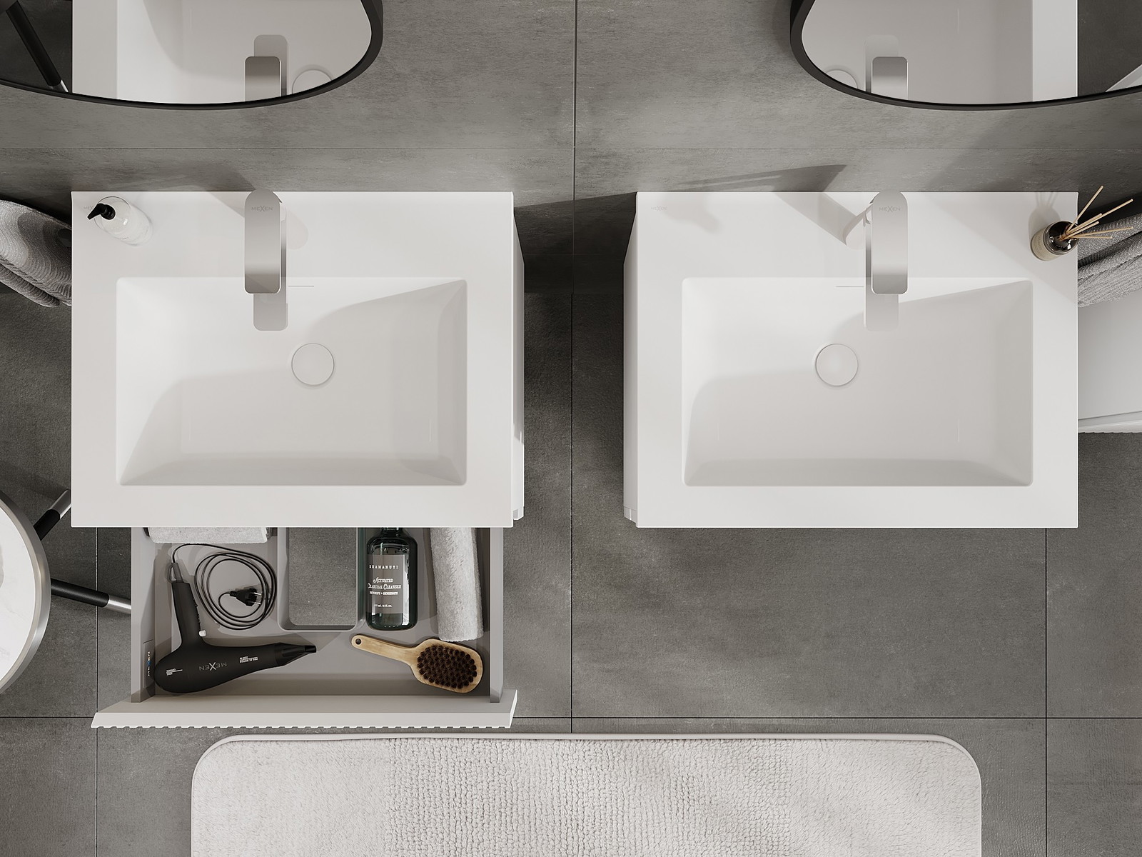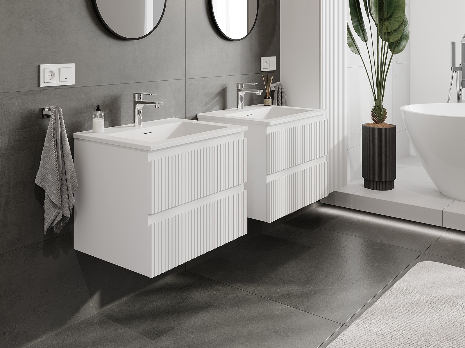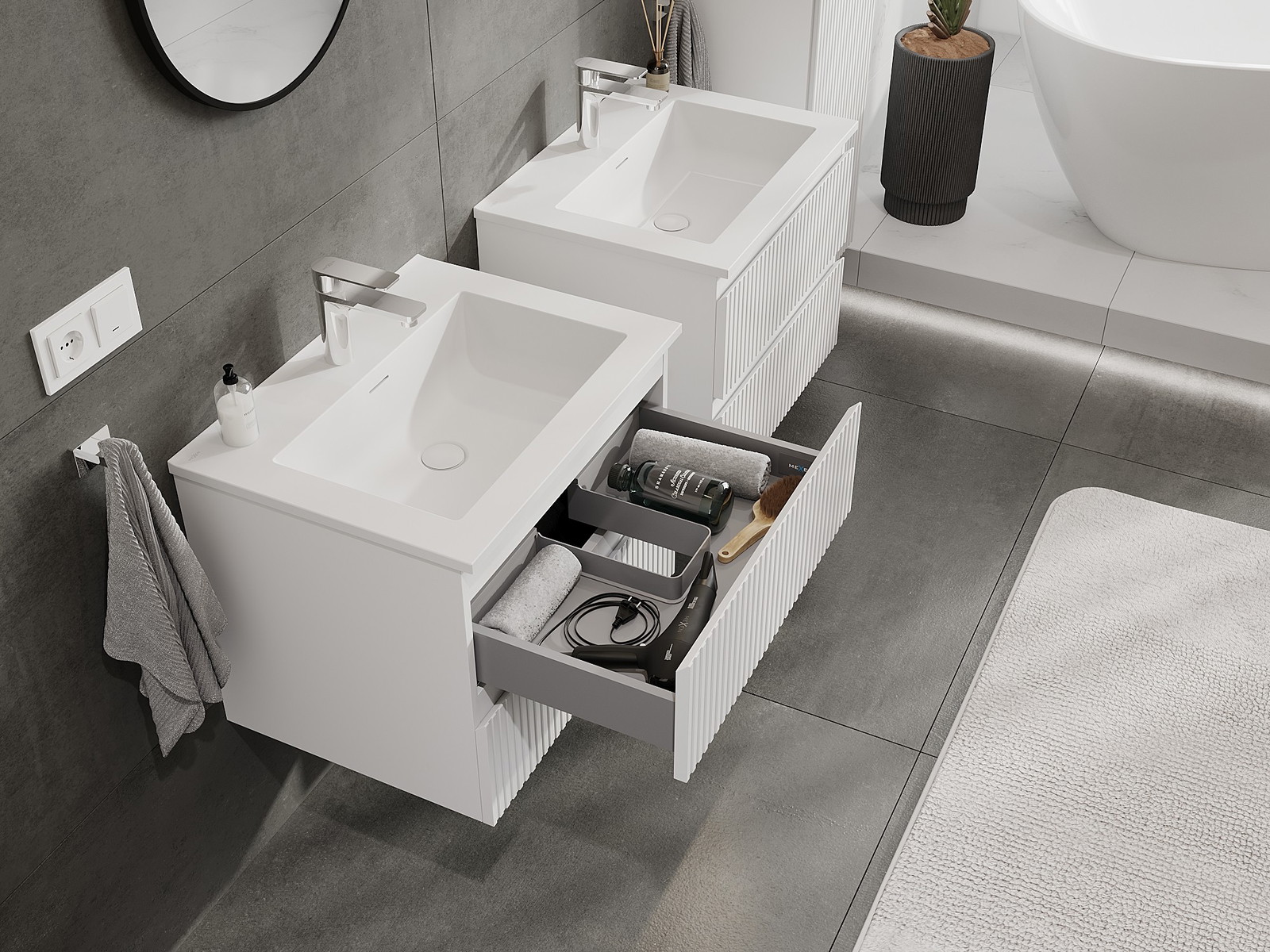 Нашите модулни мебели за баня могат да се комбинират в различни цветови конфигурации, което позволява пълна персонализация. Може да се избере както външният вид, така и функциите на отделните елементи, което позволява съчетаване на мебелите със собствените стилови и функционални предпочитания.