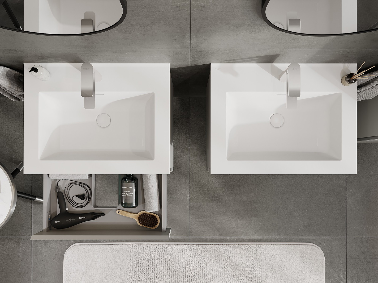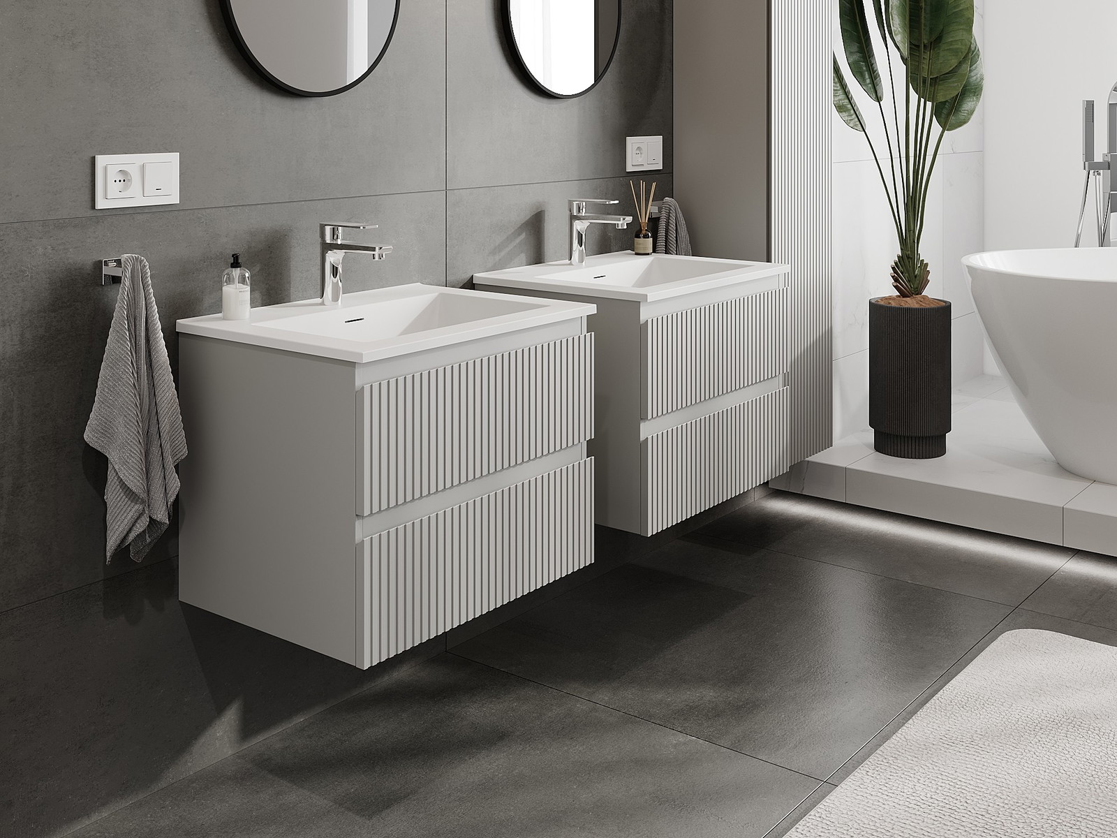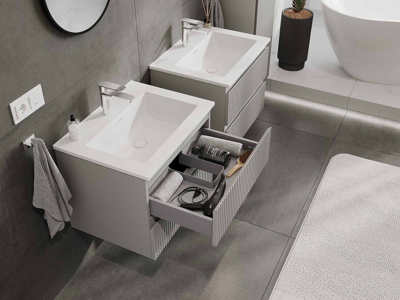 Нашите модулни мебели за баня могат да се комбинират в различни цветови конфигурации, което позволява пълна персонализация. Може да се избере както външният вид, така и функциите на отделните елементи, което позволява съчетаване на мебелите със собствените стилови и функционални предпочитания.