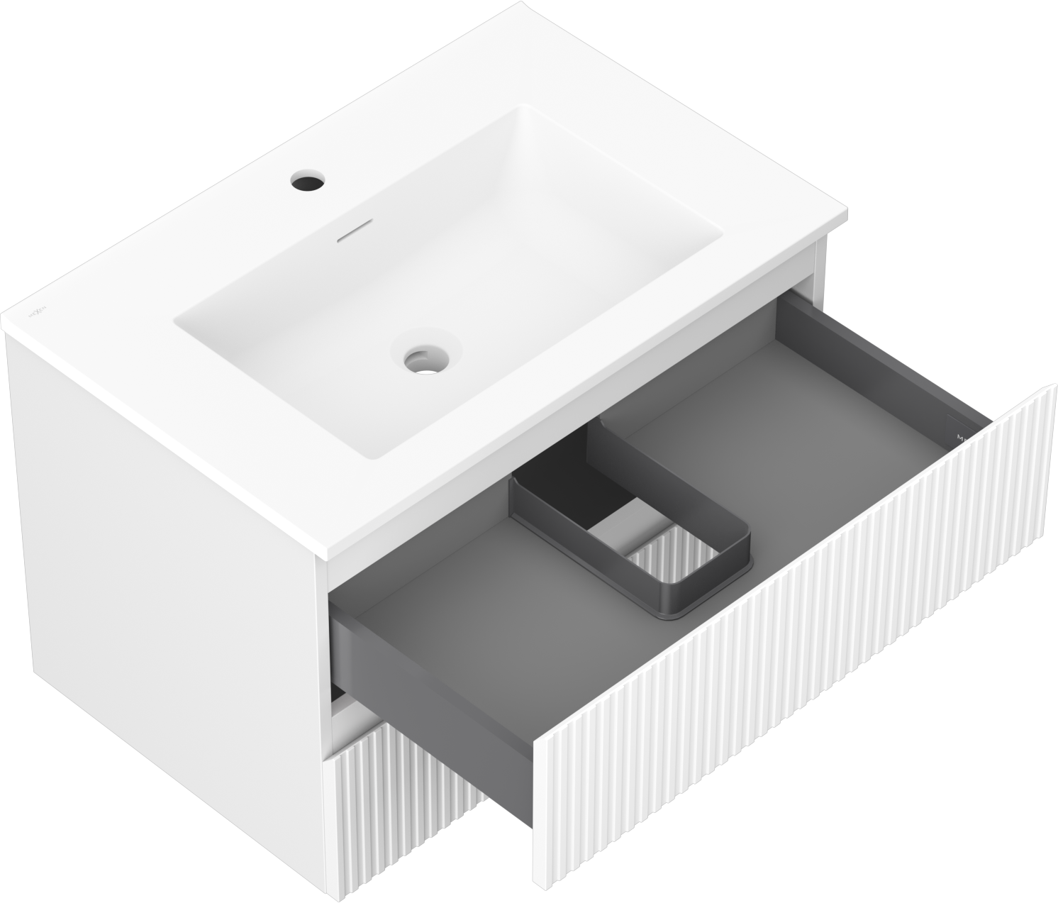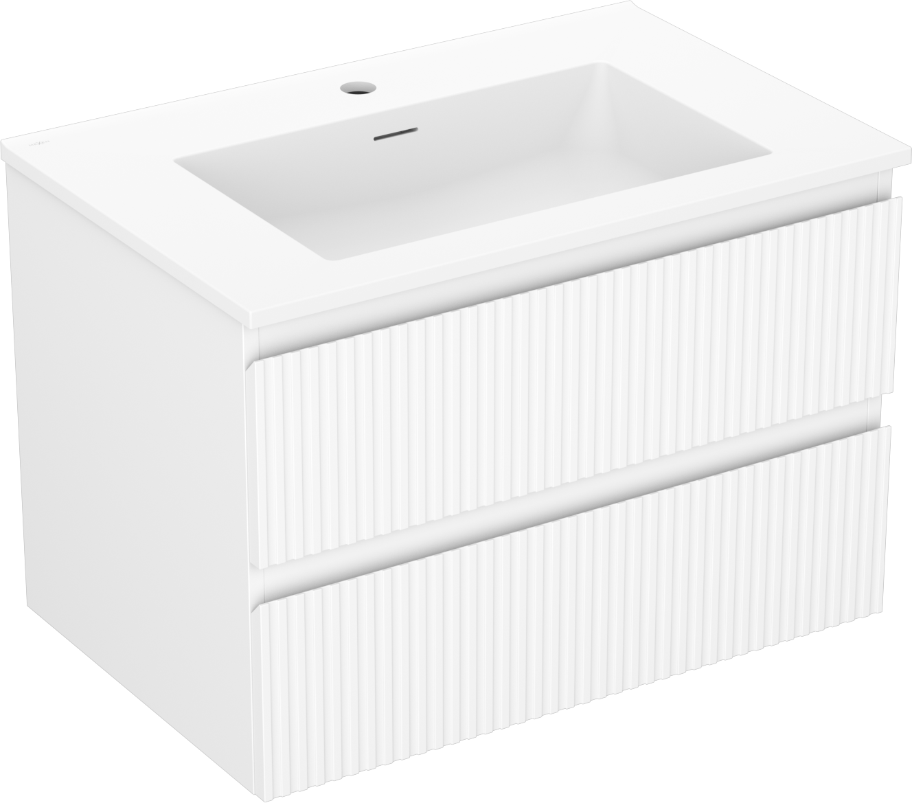 Mexen Rivel шкаф за баня 70 см с умивалник Otis, 2 чекмеджета, рифелована, бяла мат - 91A20-07047-2-BFF01-W18M01