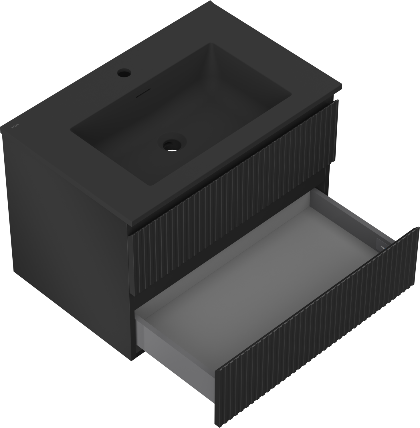 Mexen Rivel шкаф за баня 70 см с мивка Otis, 2 чекмеджета, оребрена, черен мат - 91A20-07047-2-BFF71-W18M71