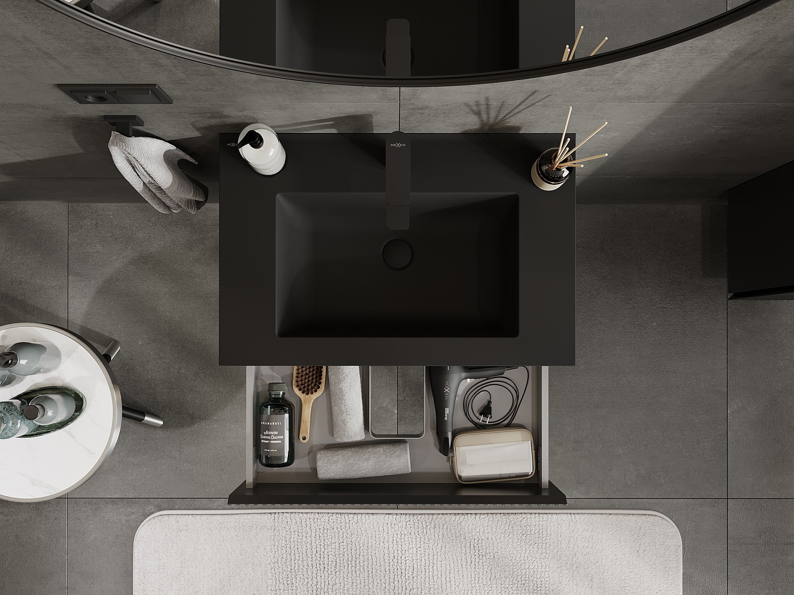 Изрезът в чекмеджето е проектиран по такъв начин, че да побере сифона, който е необходим в мивковите инсталации. Благодарение на това мебелът може да бъде монтиран напълно функционално, без да се налага отказване от пространството в чекмеджето заради инсталацията.