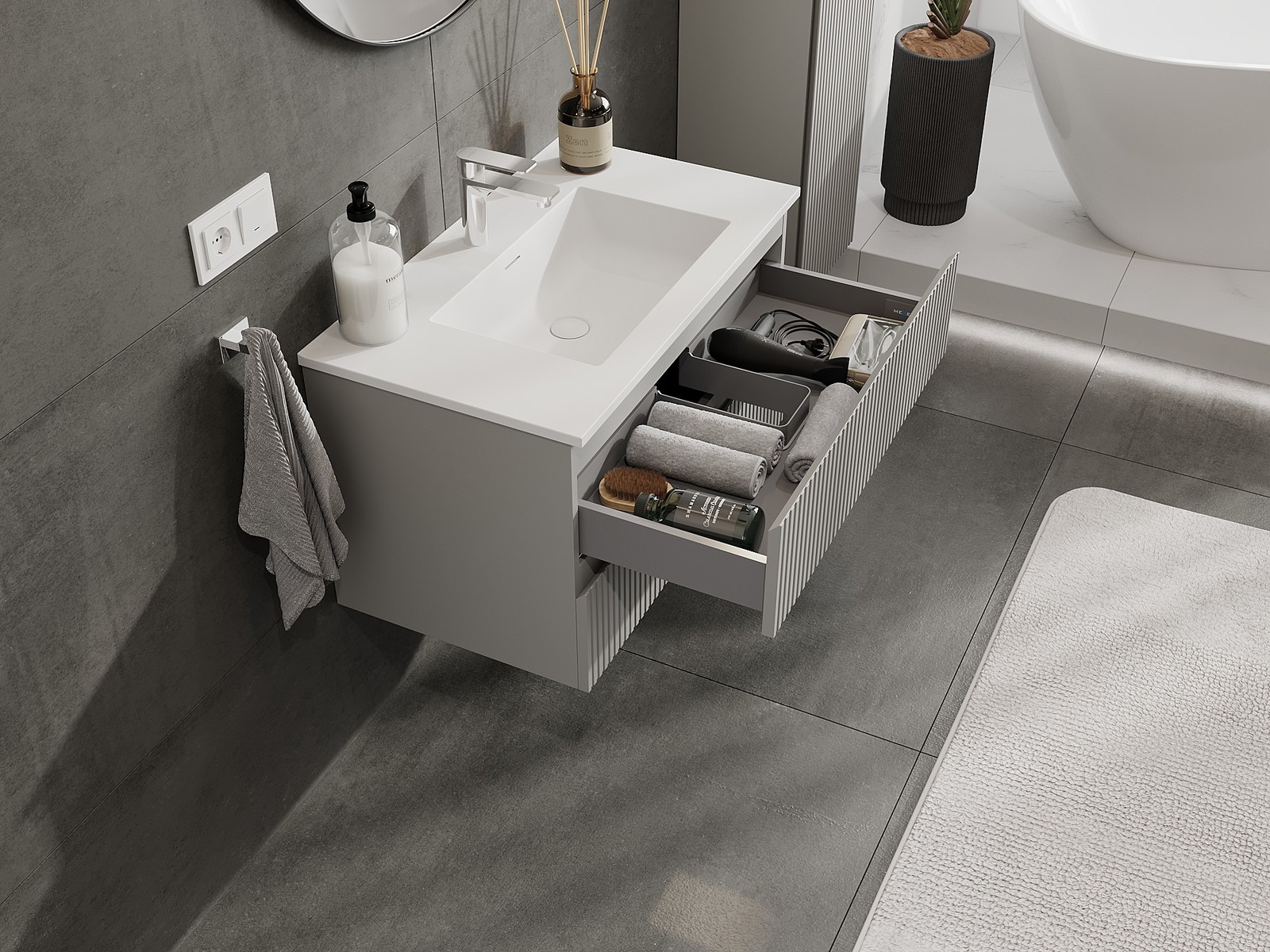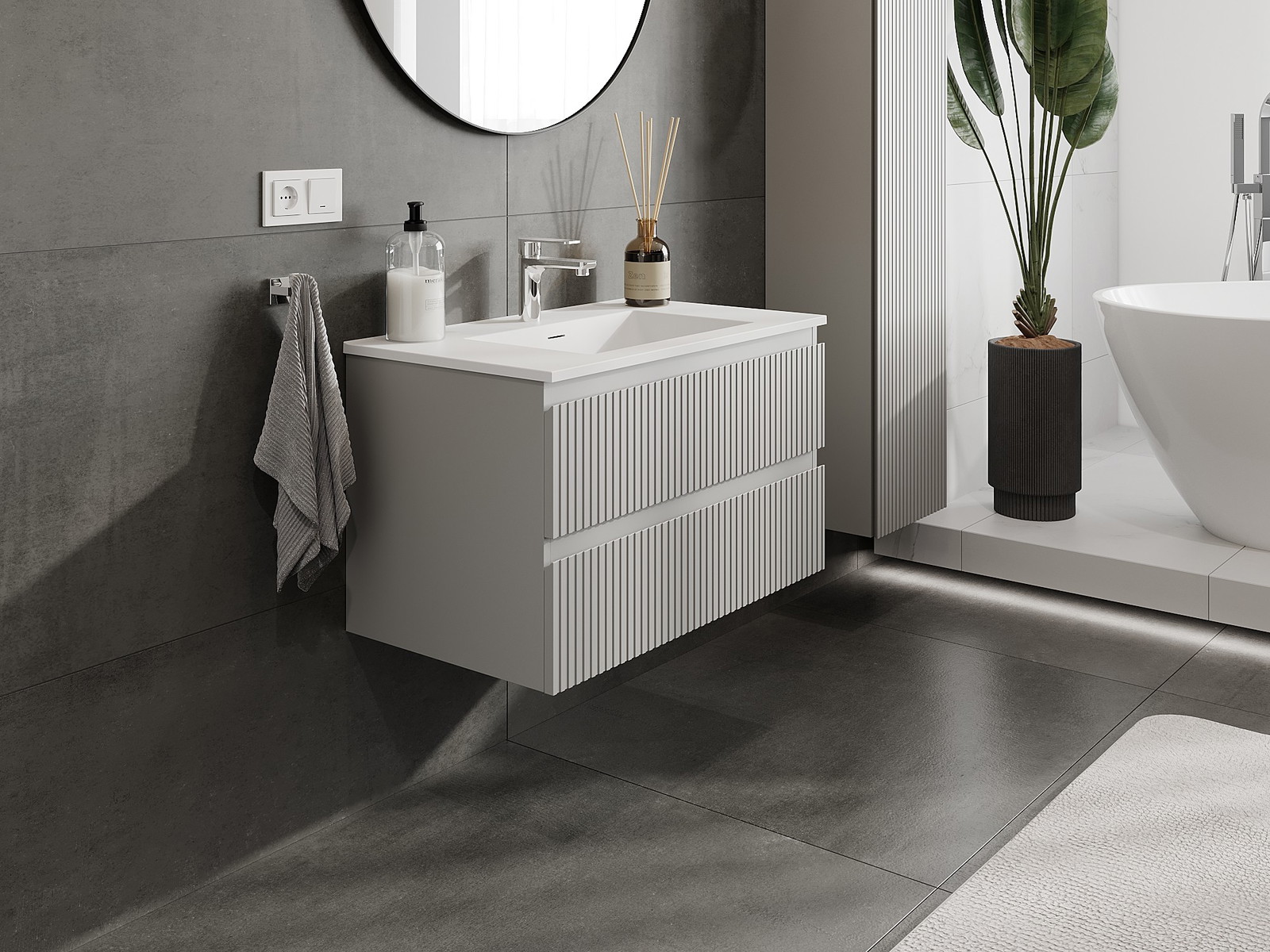 Корпусът на шкафа се доставя напълно сглобен, което означава максимално удобство и спестяване на време. Не е нужно да губите часове за сглобяване на мебела – просто го монтирайте на избраното място в банята. Това е идеалното решение за хора, които ценят бързия монтаж и незабавния ефект.