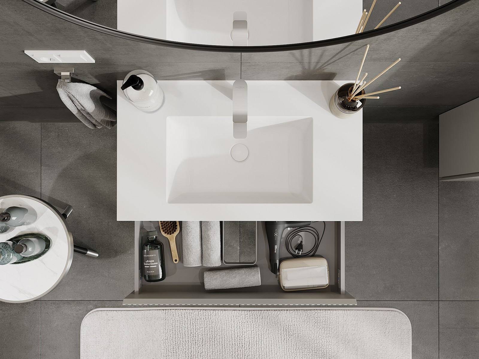Нашите модулни мебели за баня могат да се комбинират в различни цветови конфигурации, което позволява пълна персонализация. Може да се избере както външният вид, така и функциите на отделните елементи, което позволява съчетаване на мебелите със собствените стилови и функционални предпочитания.