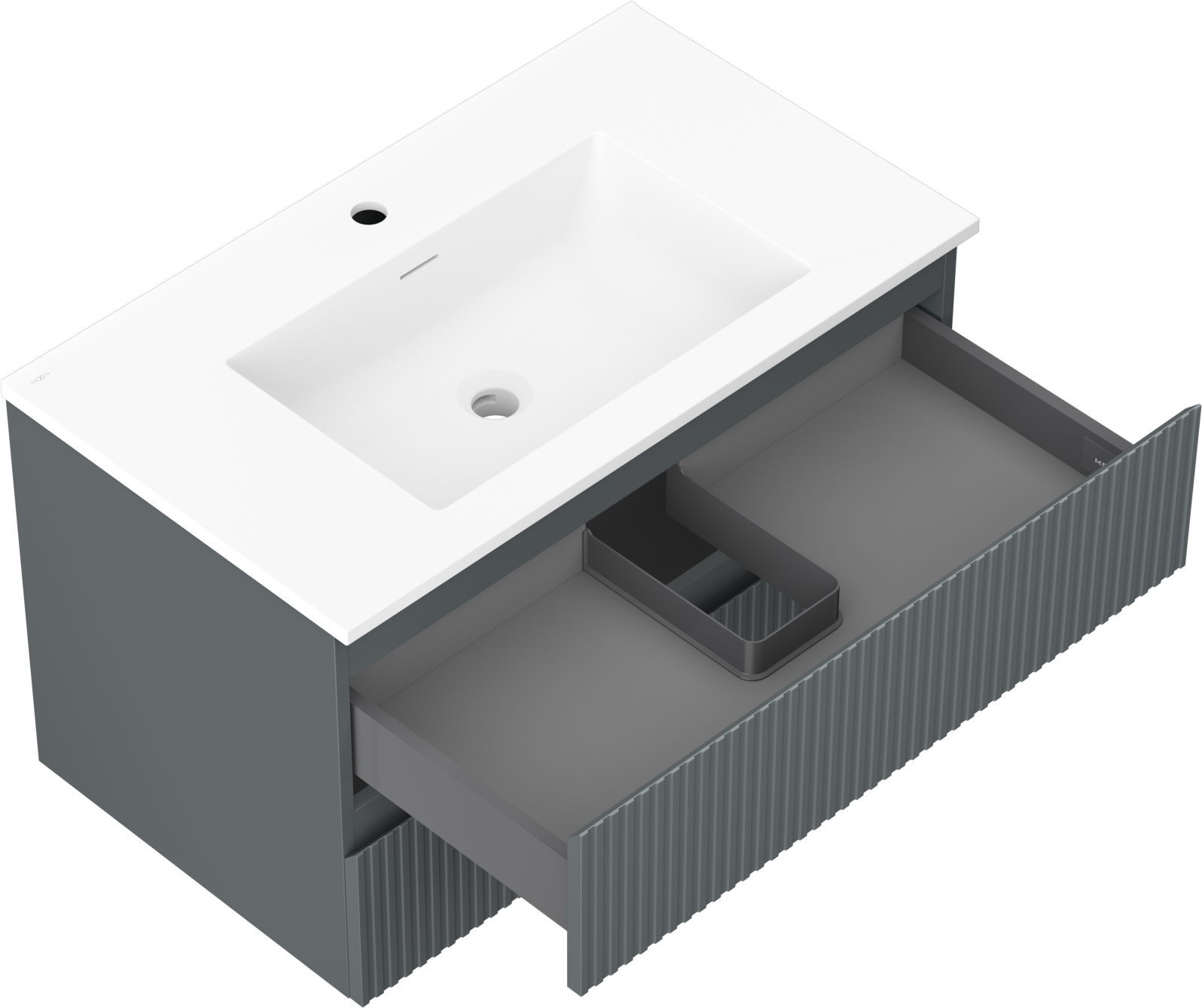 Mexen Rivel шкаф за баня 80 см с мивка Otis, 2 чекмеджета, релефен, графит