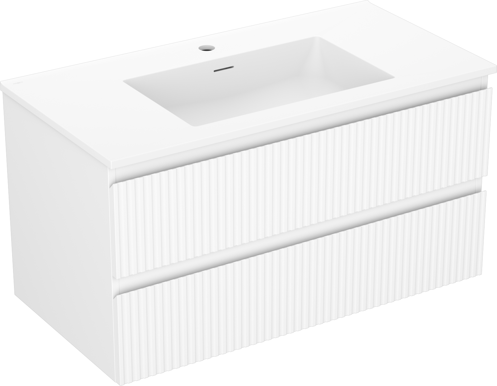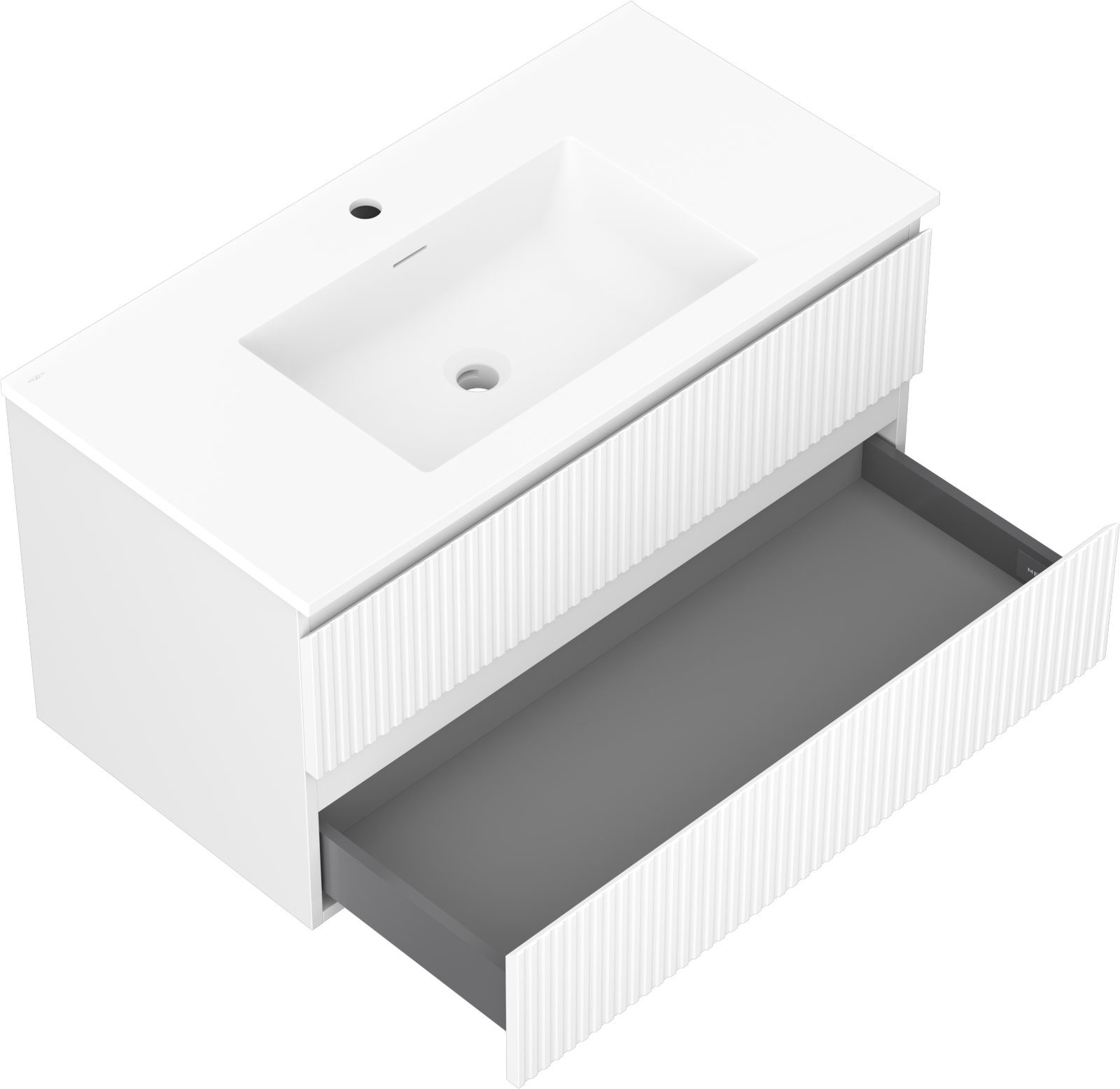Mexen Rivel баня шкаф 90 см с мивка Otis, 2 чекмеджета, рифелован, бял мат