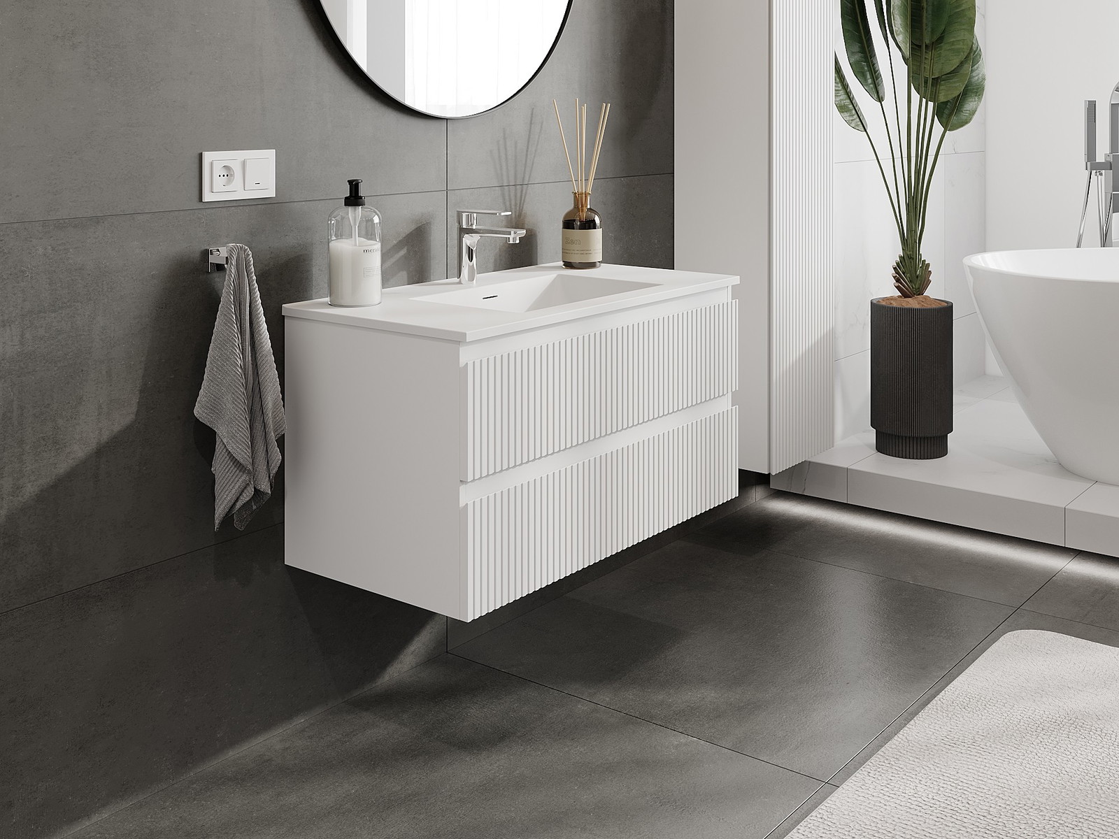 Корпусът на шкафа се доставя напълно сглобен, което означава максимално удобство и спестяване на време. Не е нужно да губите часове за сглобяване на мебела – просто го монтирайте на избраното място в банята. Това е идеалното решение за хора, които ценят бързия монтаж и незабавния ефект.