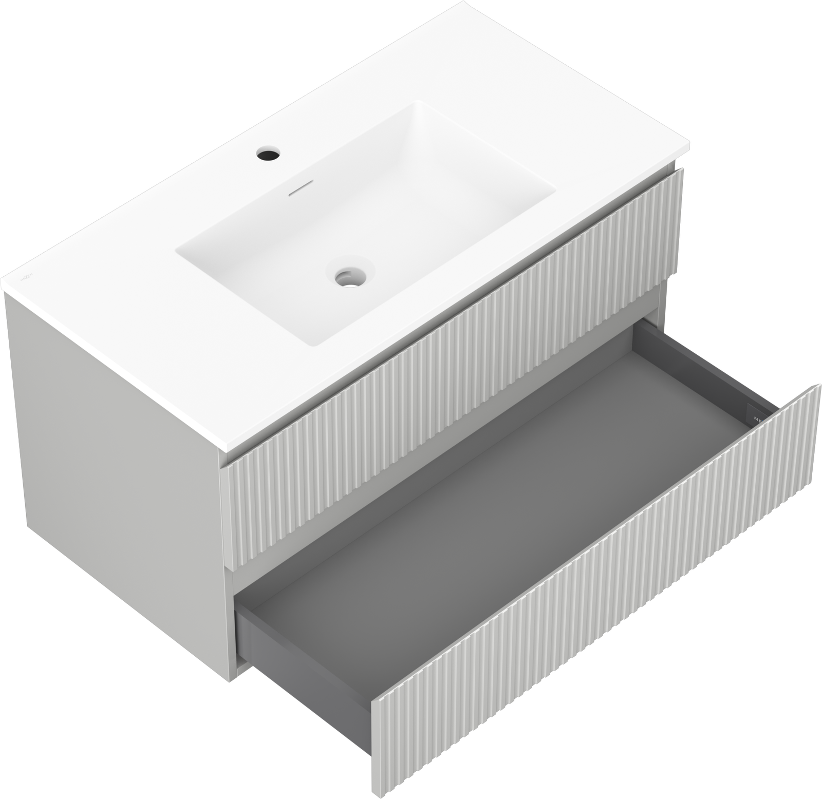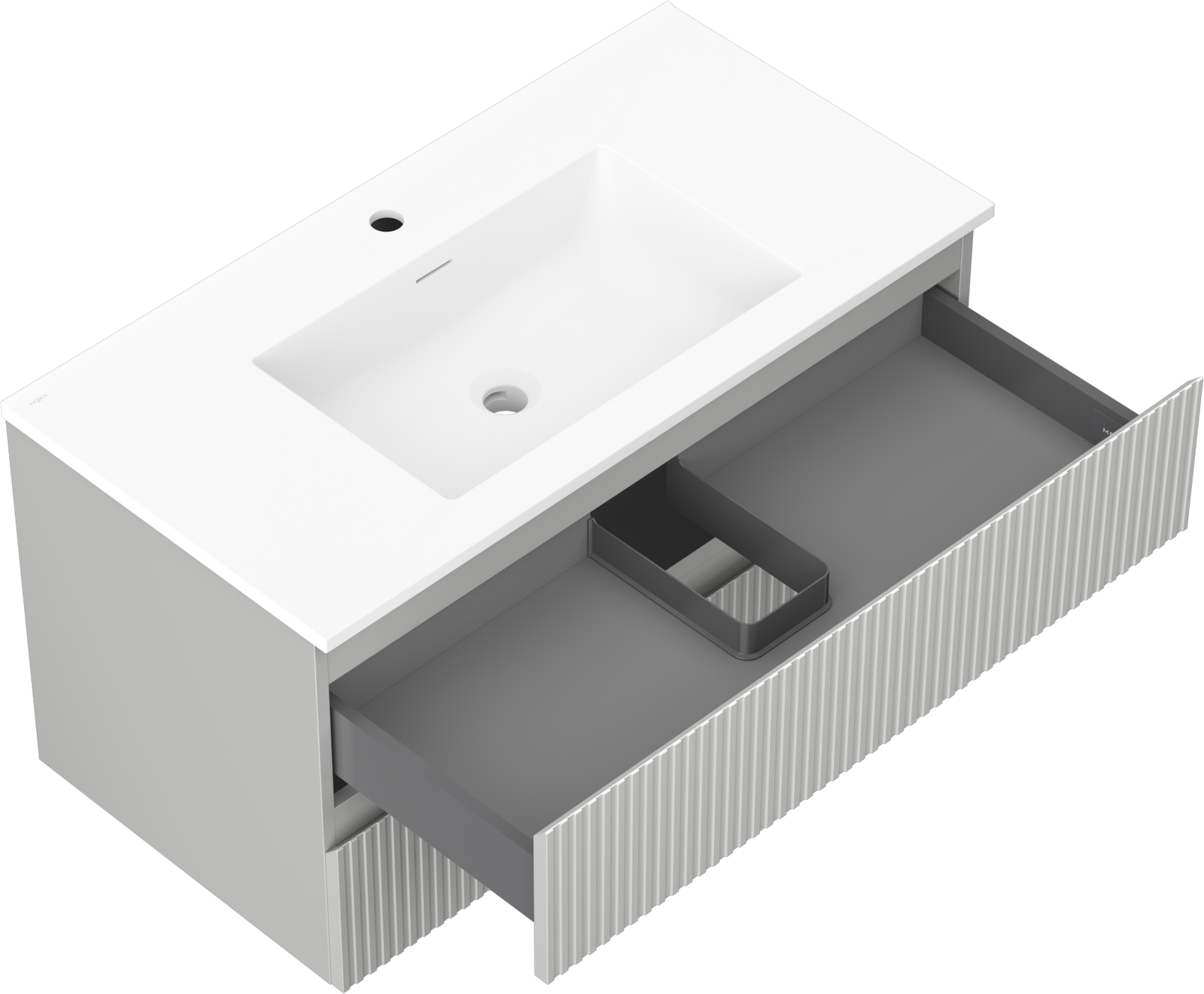 Mexen Rivel шкаф за баня 90 см с мивка Otis, 2 чекмеджета, гофриран, сив мат/бял мат - 91A20-09047-2-BFF62-W18M01