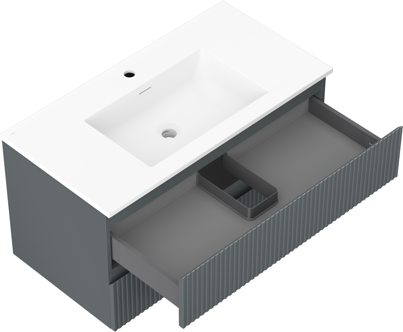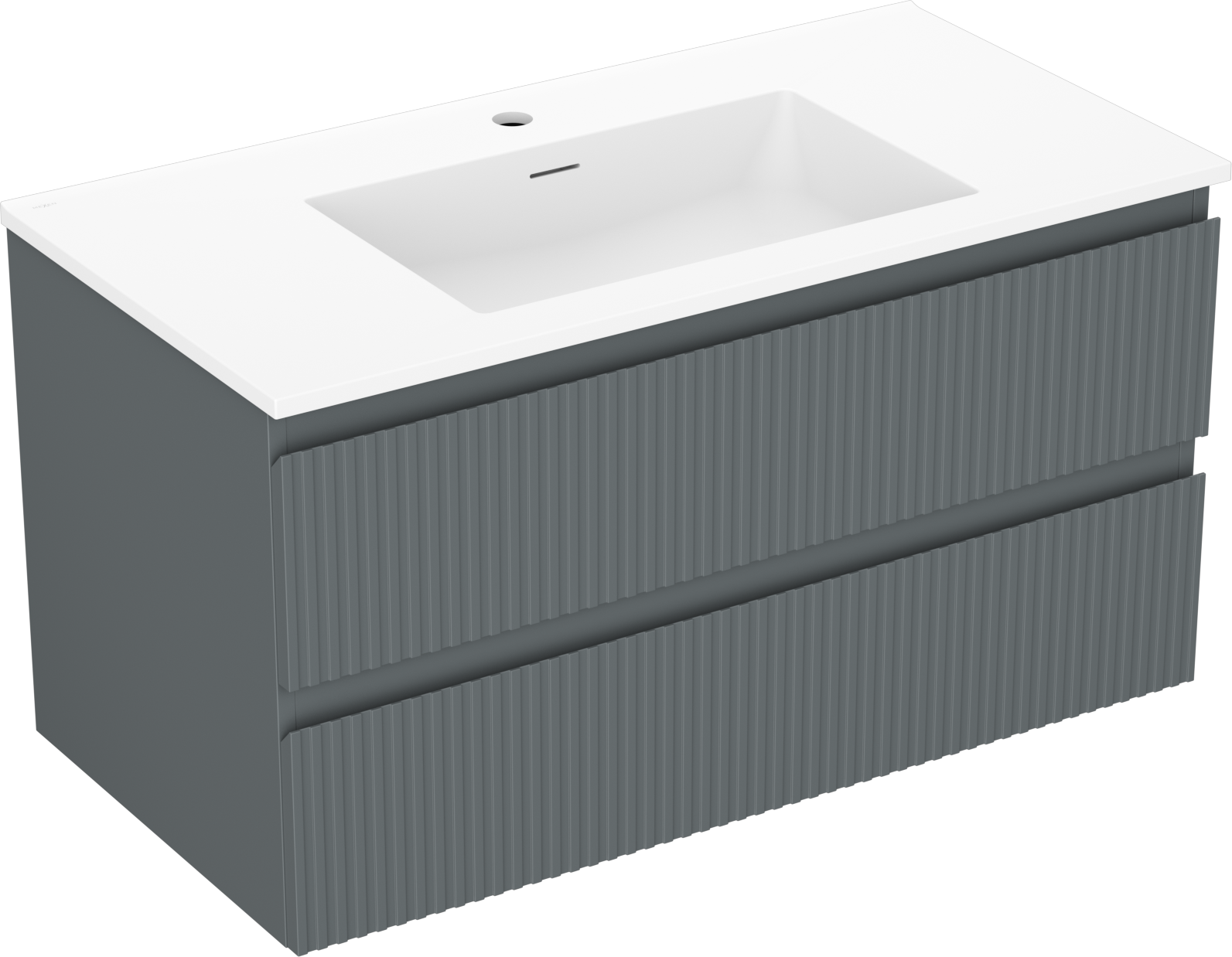 Mexen Rivel шкаф за баня 90 см с мивка Otis, 2 чекмеджета, с ребра, графит мат/бял