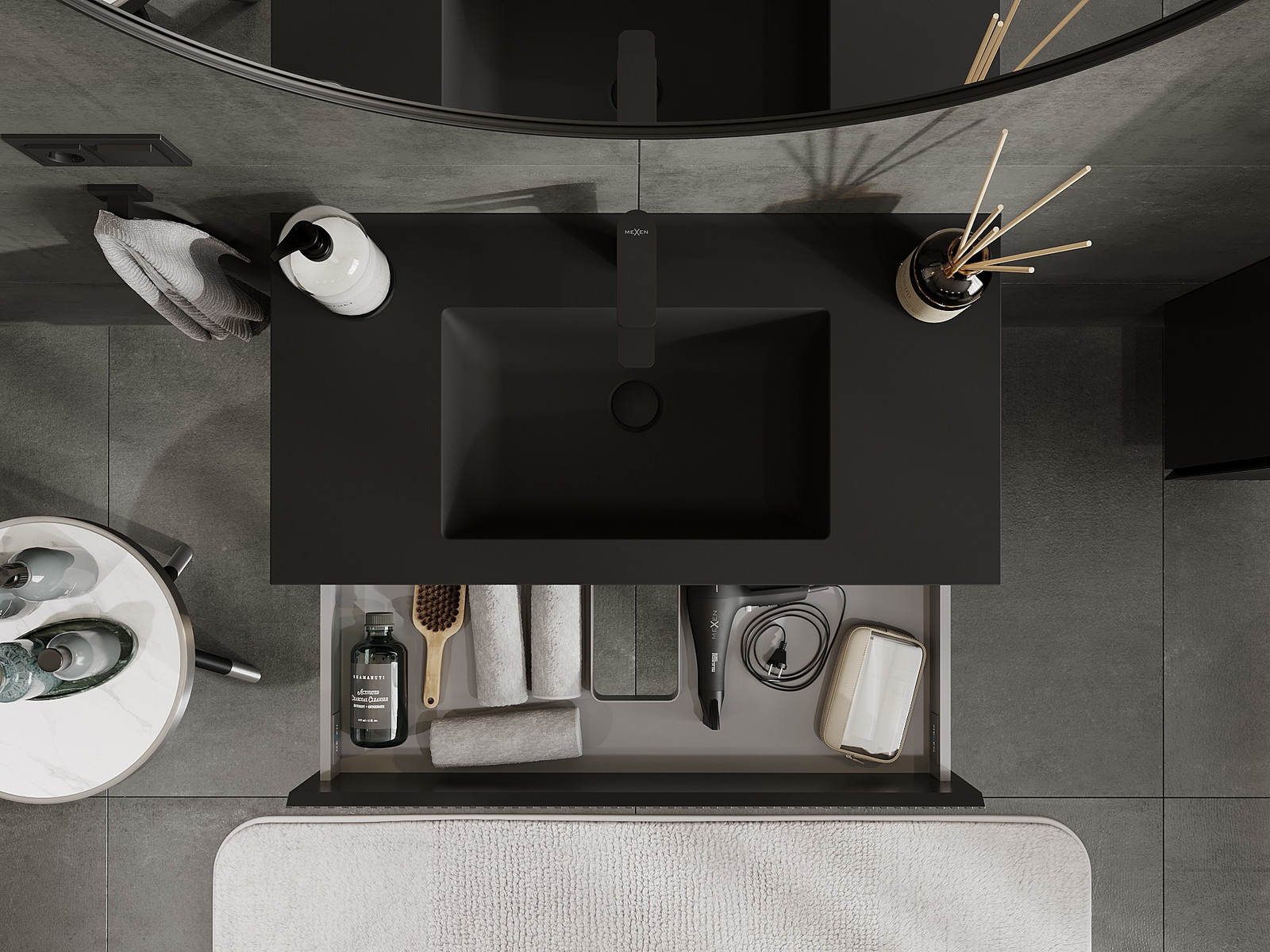 Изрезът в чекмеджето е проектиран по такъв начин, че да побере сифона, който е необходим в мивковите инсталации. Благодарение на това мебелът може да бъде монтиран напълно функционално, без да се налага отказване от пространството в чекмеджето заради инсталацията.
