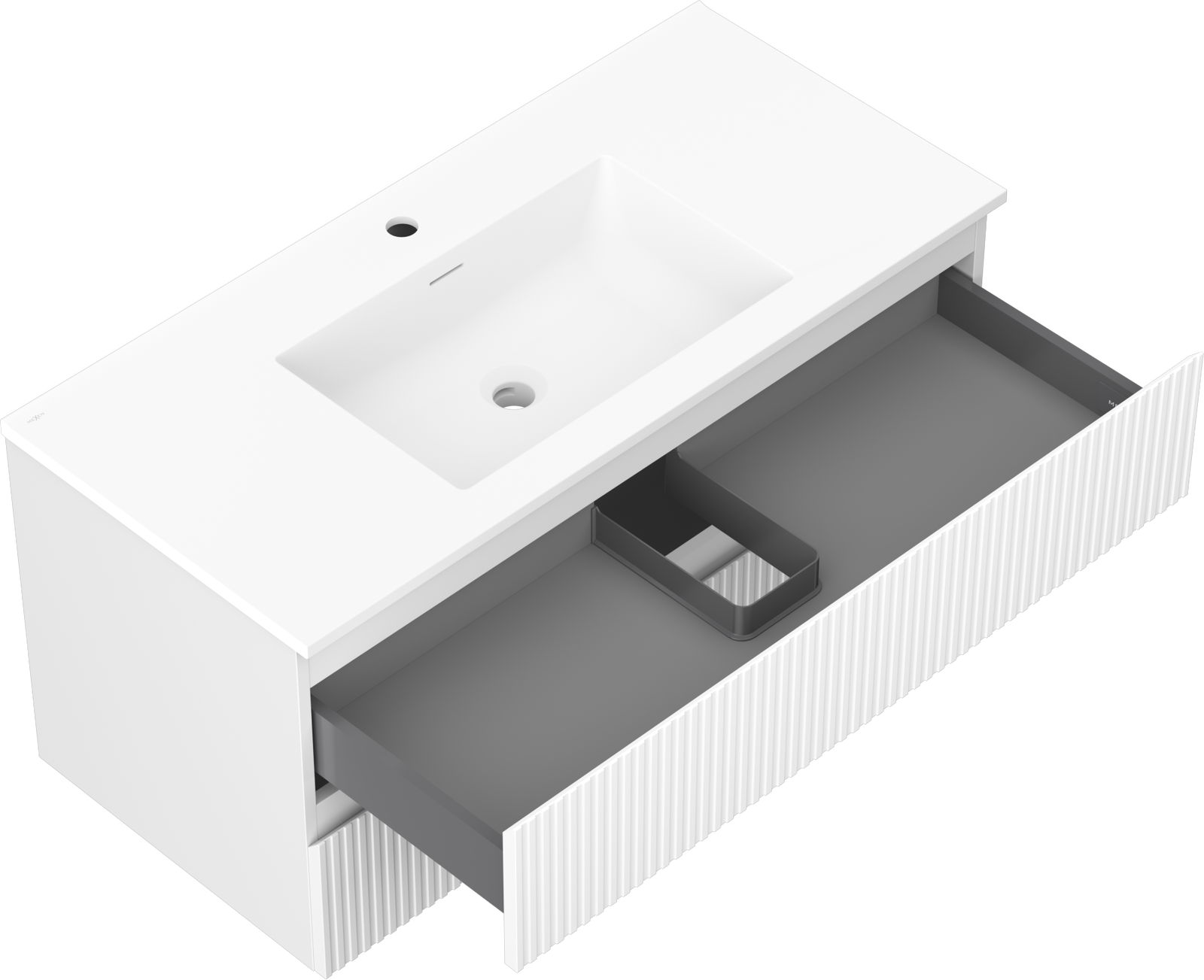 Mexen Rivel шкафче за баня 100 см с мивка Otis, 2 чекмеджета, оребрено, бяло мат