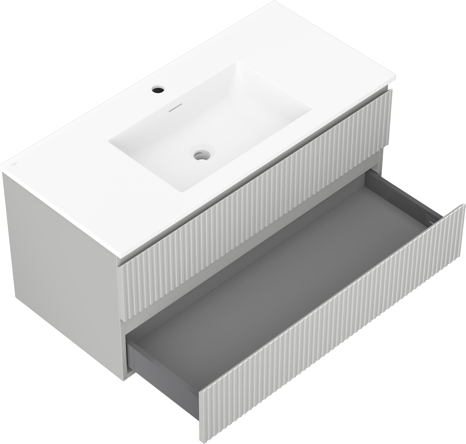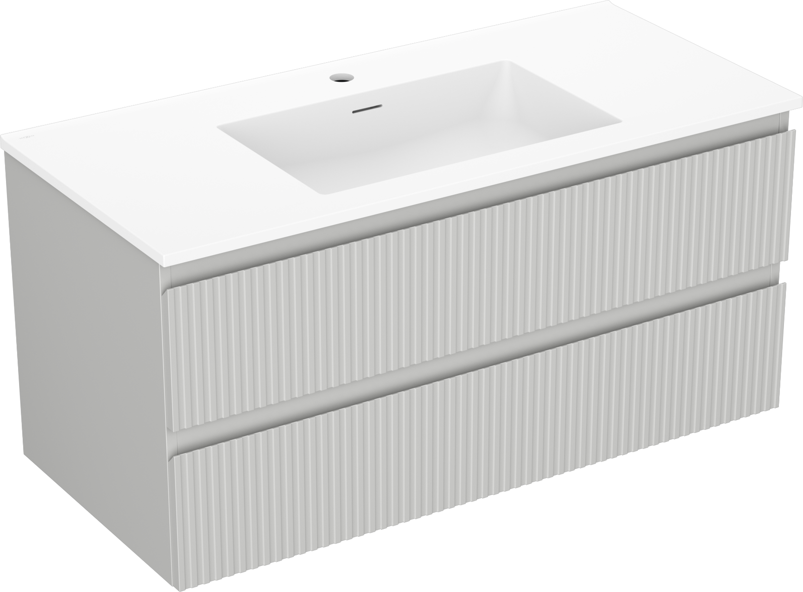 Mexen Rivel баня шкаф 100 см с мивка Otis, 2 чекмеджета, набраздена, сива мат/бяла мат - 91A20-10047-2-BFF62-W18M01