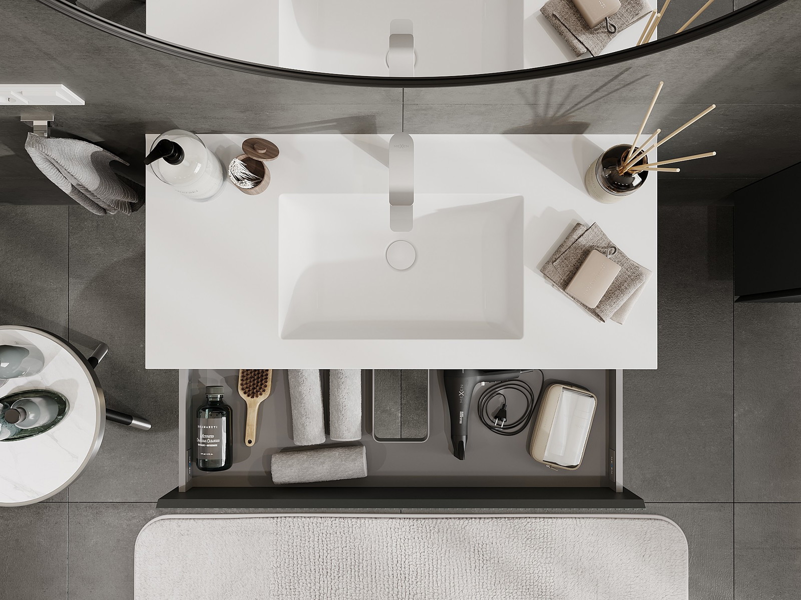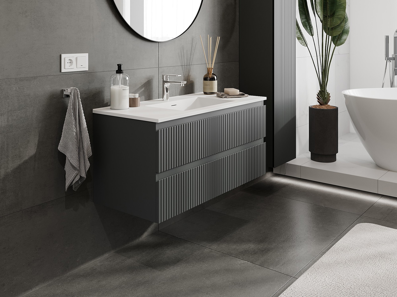 Корпусът на шкафа се доставя напълно сглобен, което означава максимално удобство и спестяване на време. Не е нужно да губите часове за сглобяване на мебела – просто го монтирайте на избраното място в банята. Това е идеалното решение за хора, които ценят бързия монтаж и незабавния ефект.