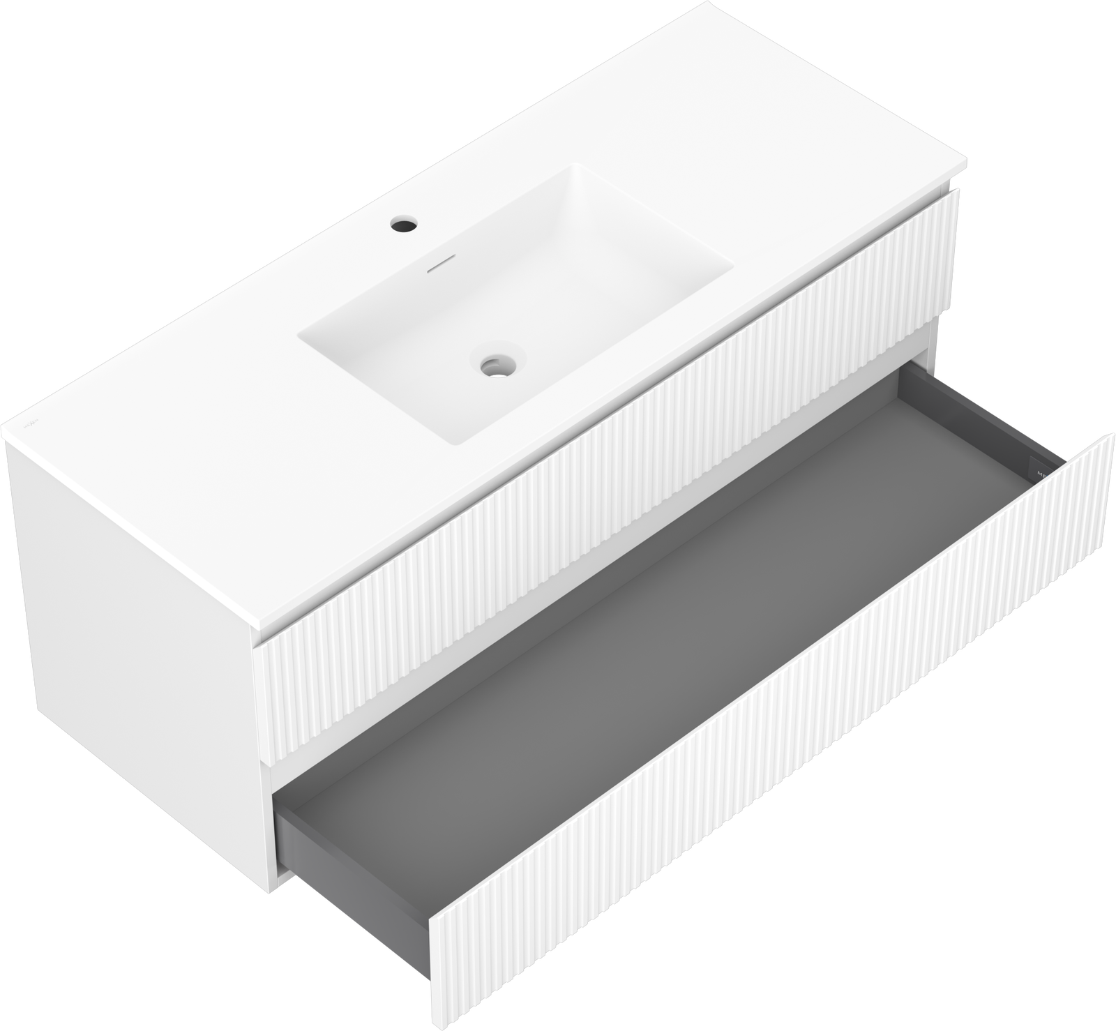 Mexen Rivel шкаф за баня 120 см с умивалник Otis, 2 чекмеджета, оребрен, бял мат - 91A20-12047-2-BFF01-W18M01