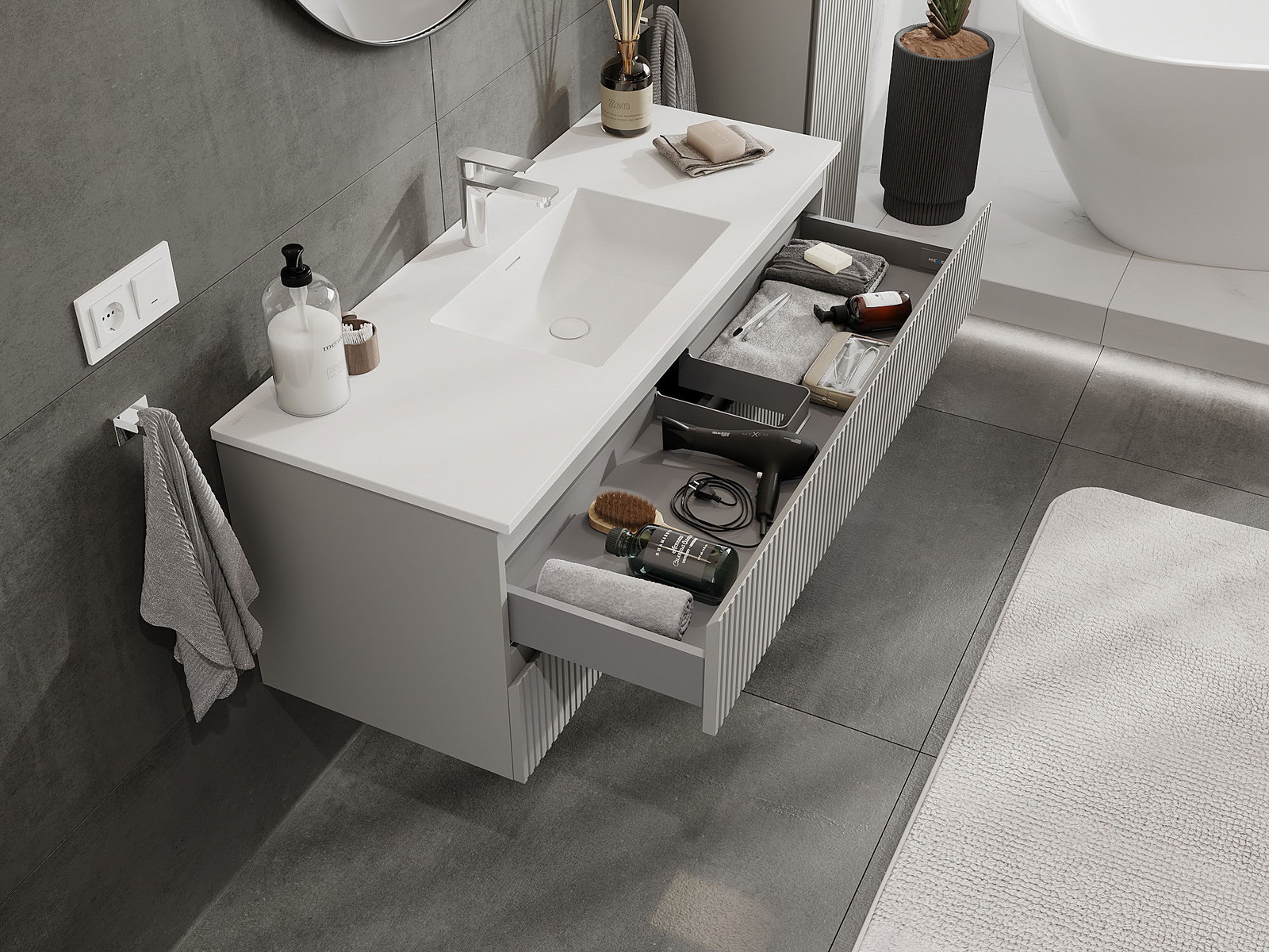 Нашите модулни мебели за баня могат да се комбинират в различни цветови конфигурации, което позволява пълна персонализация. Може да се избере както външният вид, така и функциите на отделните елементи, което позволява съчетаване на мебелите със собствените стилови и функционални предпочитания.