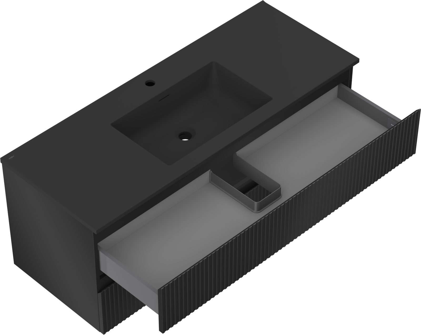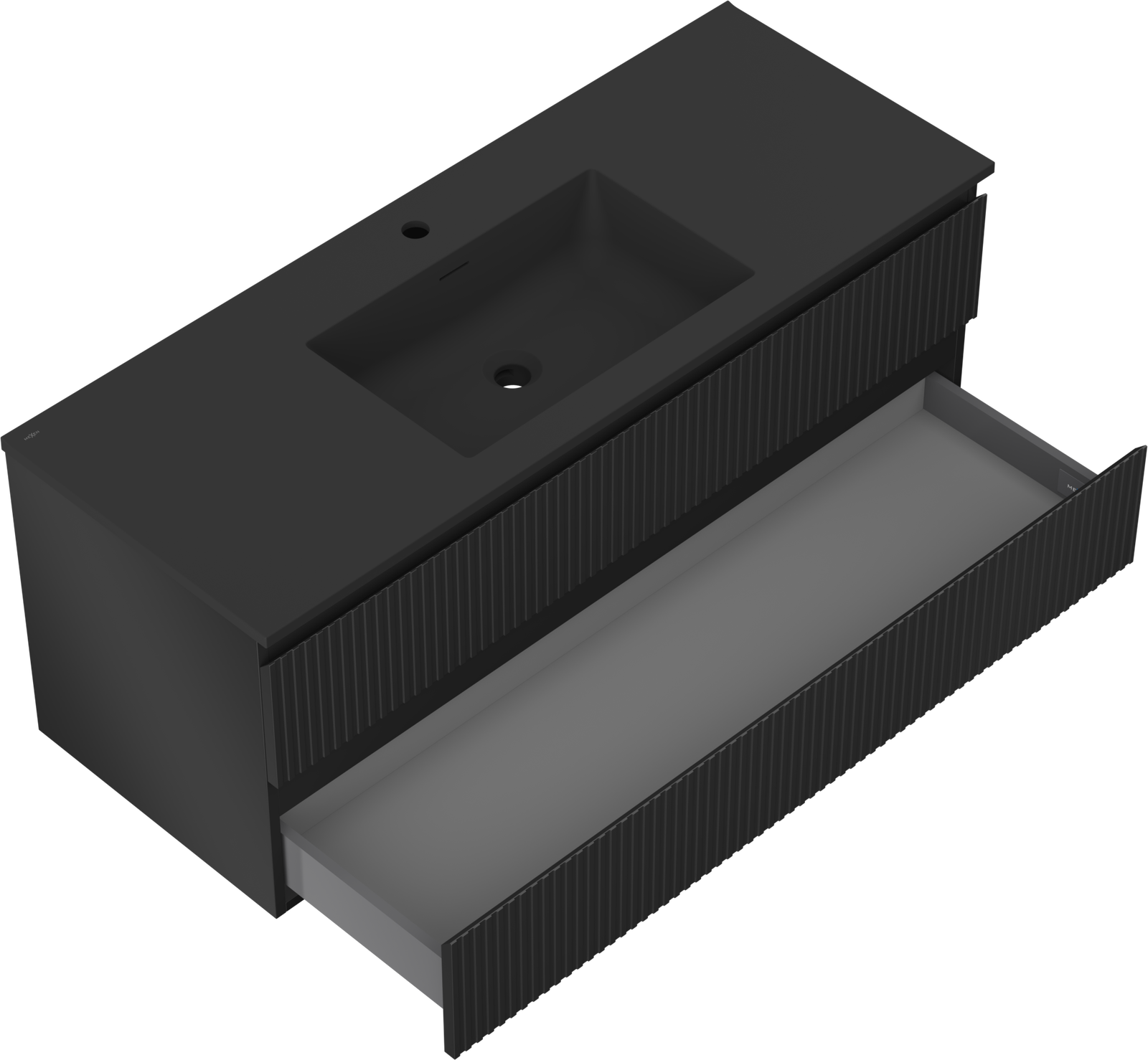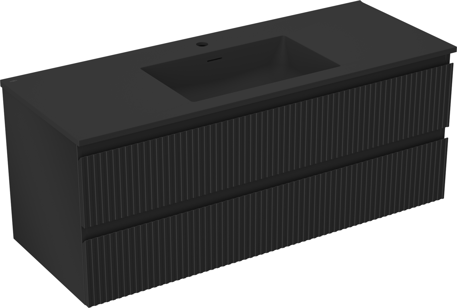 Mexen Rivel шкаф за баня 120 см с мивка Otis, 2 чекмеджета, оребрена, черен мат - 91A20-12047-2-BFF71-W18M71