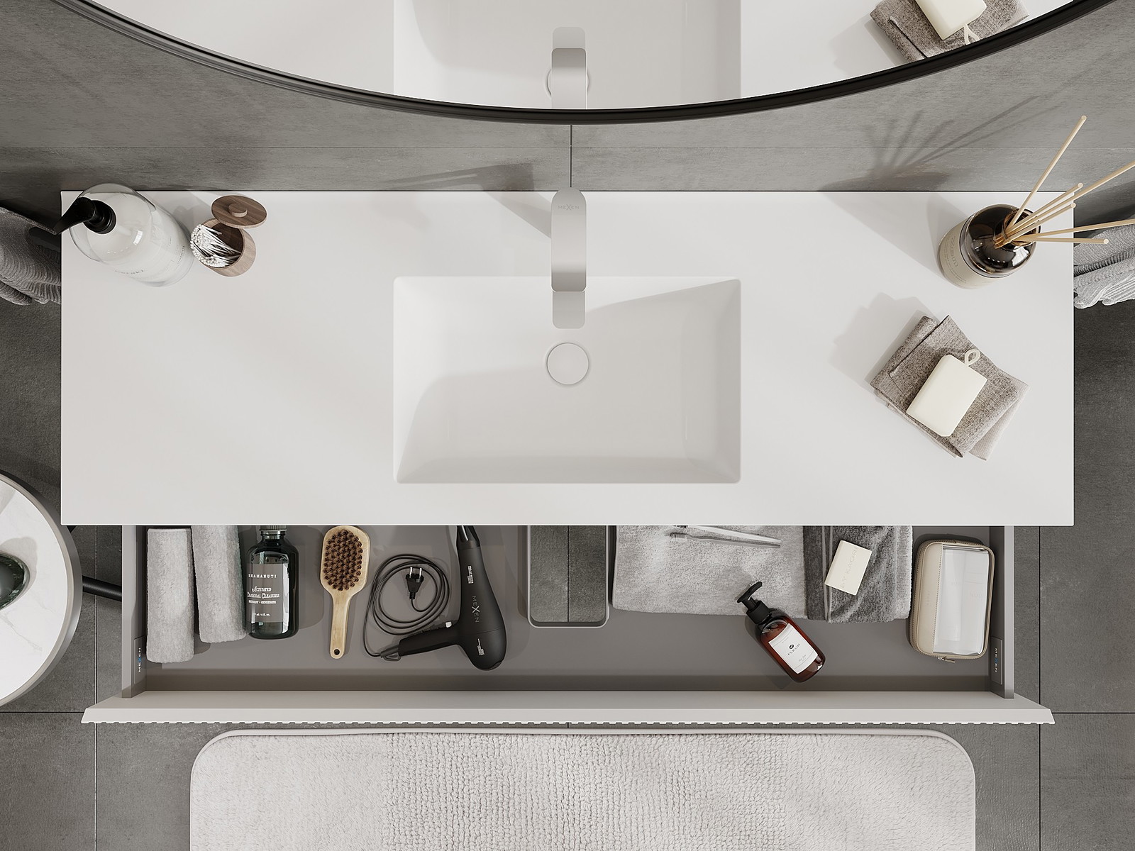 Изрезът в чекмеджето е проектиран по такъв начин, че да побере сифона, който е необходим в мивковите инсталации. Благодарение на това мебелът може да бъде монтиран напълно функционално, без да се налага отказване от пространството в чекмеджето заради инсталацията.