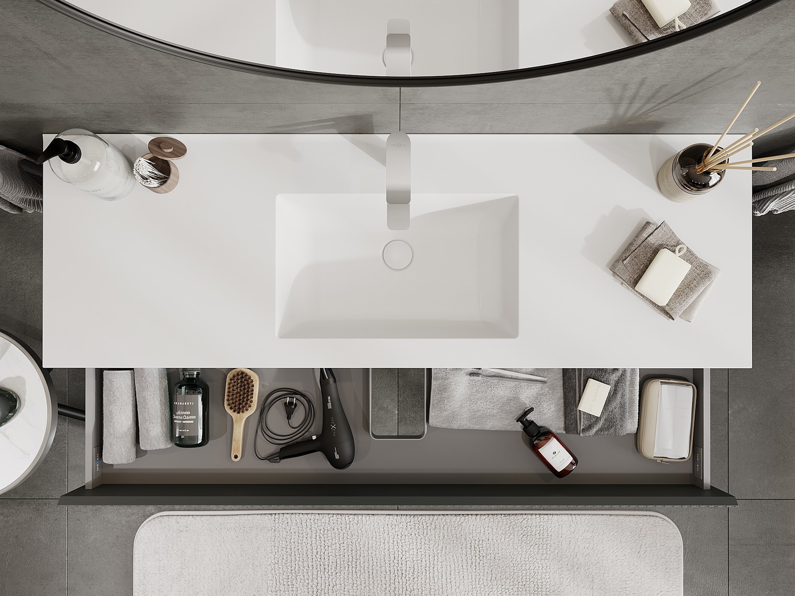 Изрезът в чекмеджето е проектиран по такъв начин, че да побере сифона, който е необходим в мивковите инсталации. Благодарение на това мебелът може да бъде монтиран напълно функционално, без да се налага отказване от пространството в чекмеджето заради инсталацията.