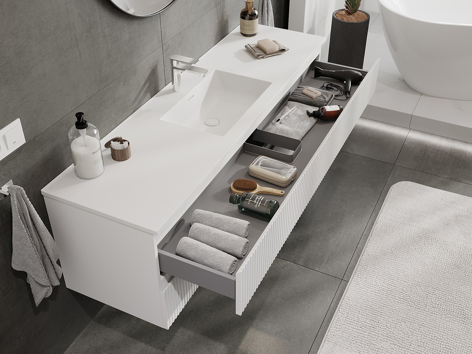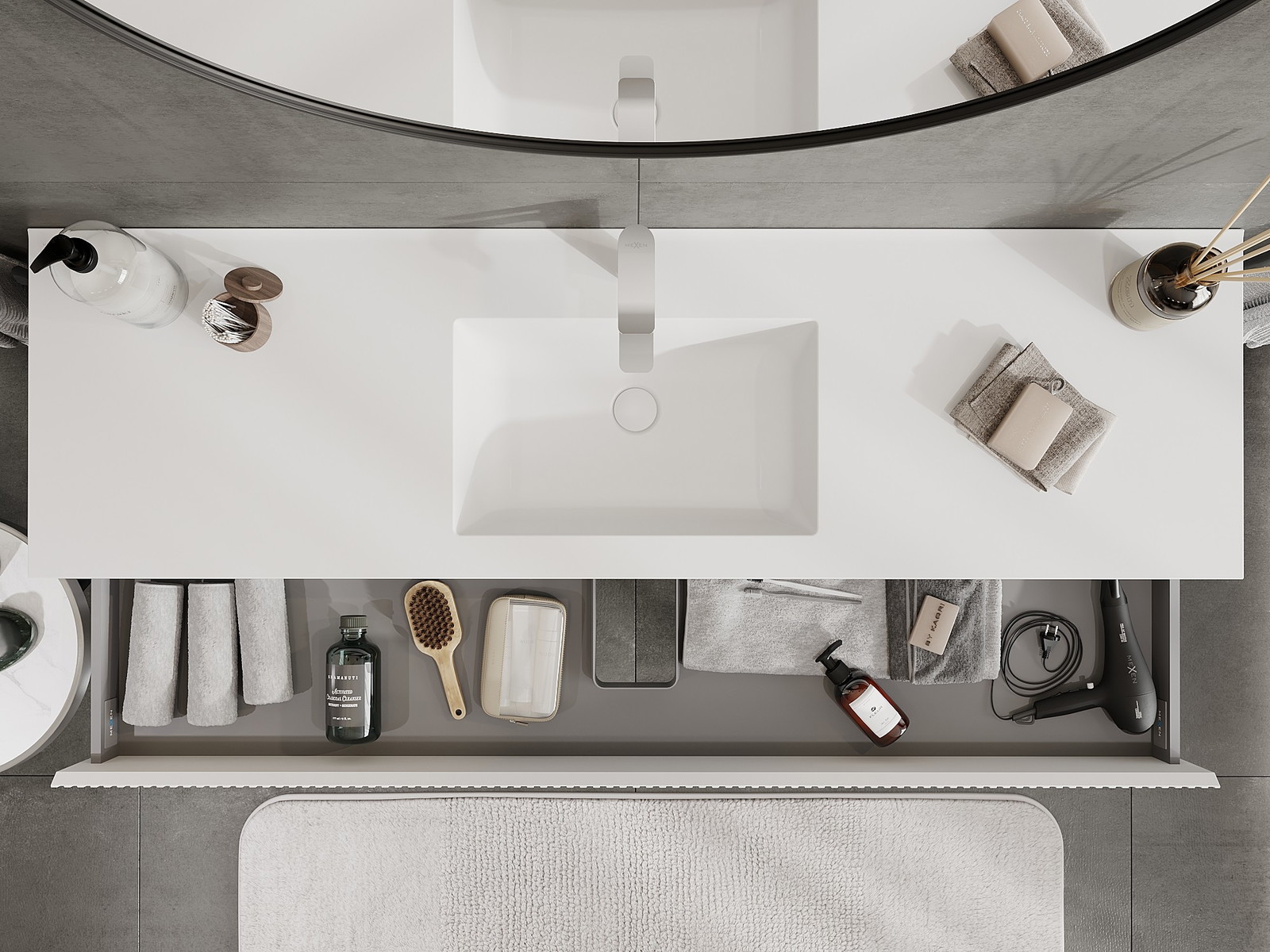 Нашите модулни мебели за баня могат да се комбинират в различни цветови конфигурации, което позволява пълна персонализация. Може да се избере както външният вид, така и функциите на отделните елементи, което позволява съчетаване на мебелите със собствените стилови и функционални предпочитания.