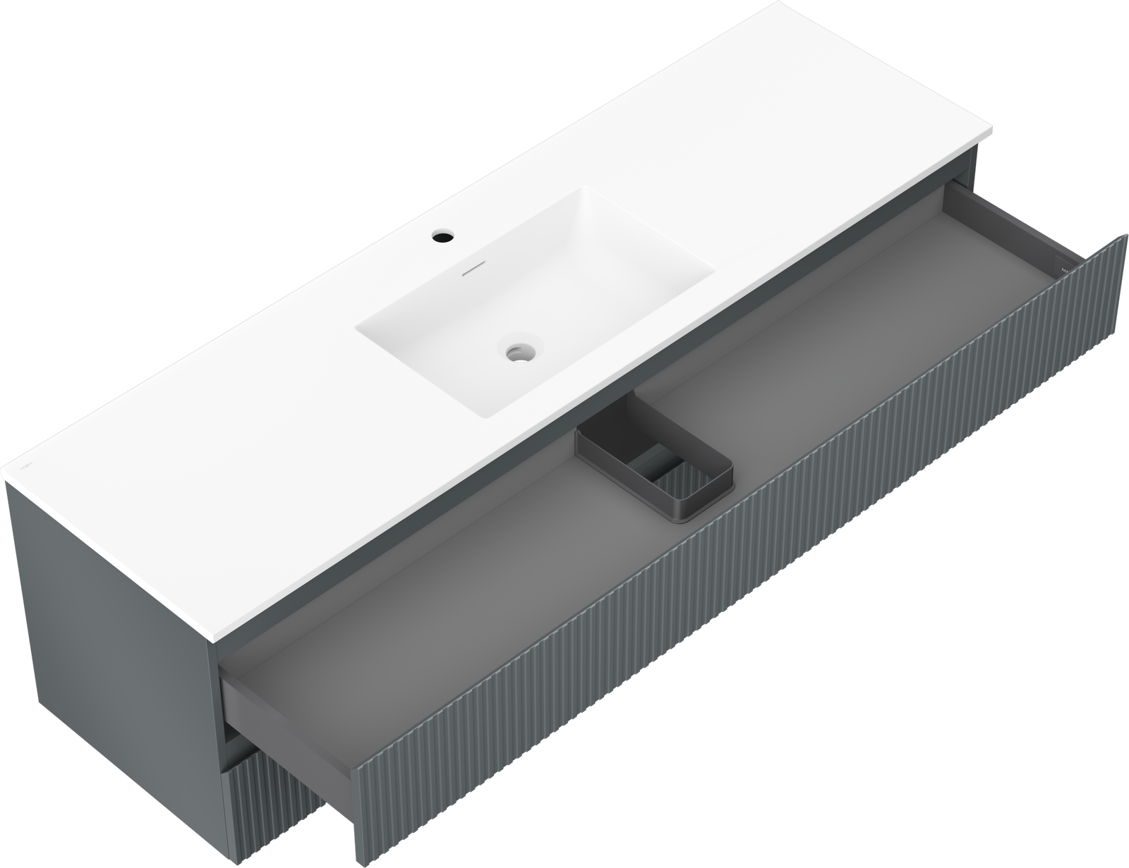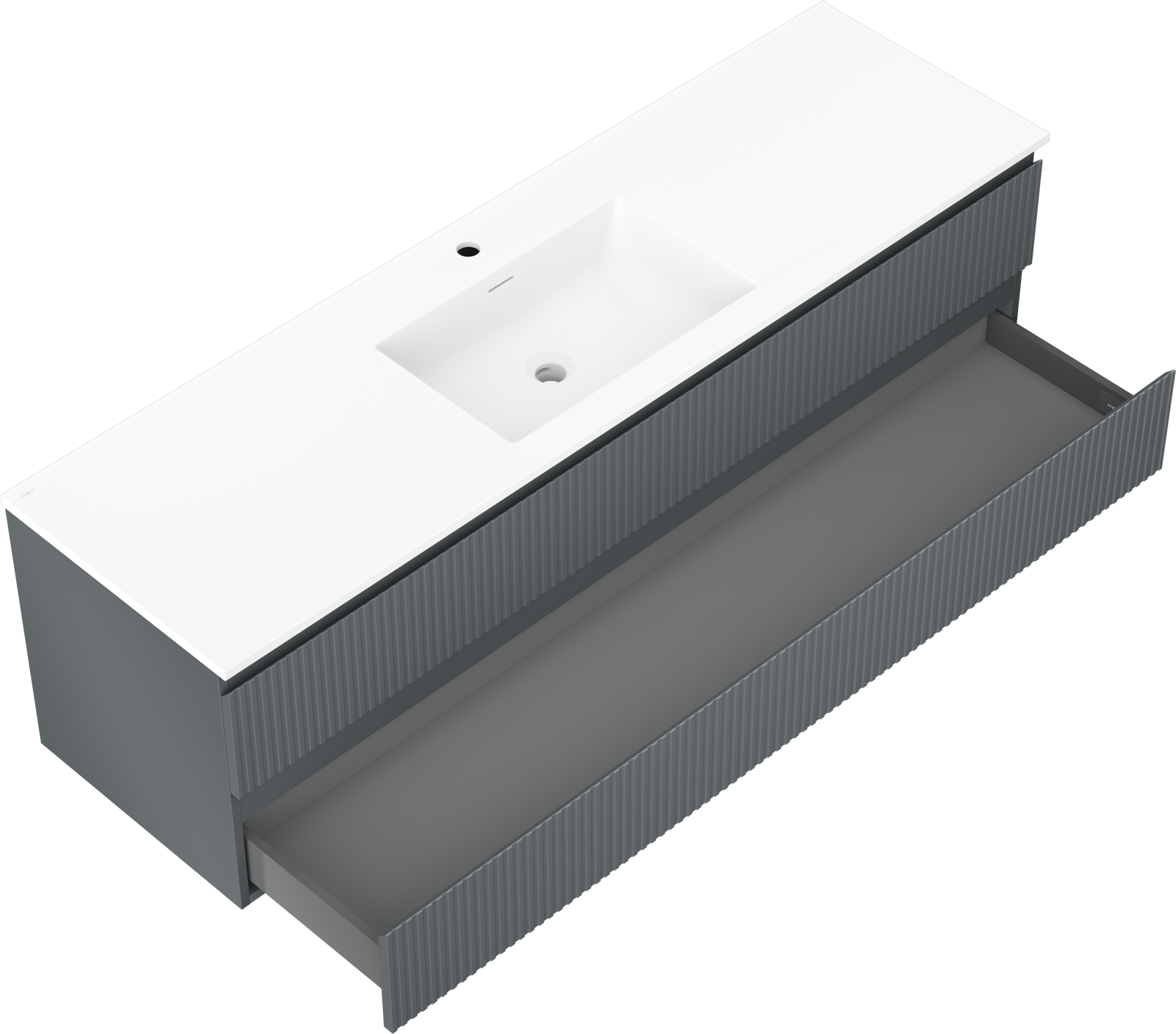 Mexen Rivel баня шкаф 160 см с мивка Otis, 2 чекмеджета, оребрени, графит мат/бял