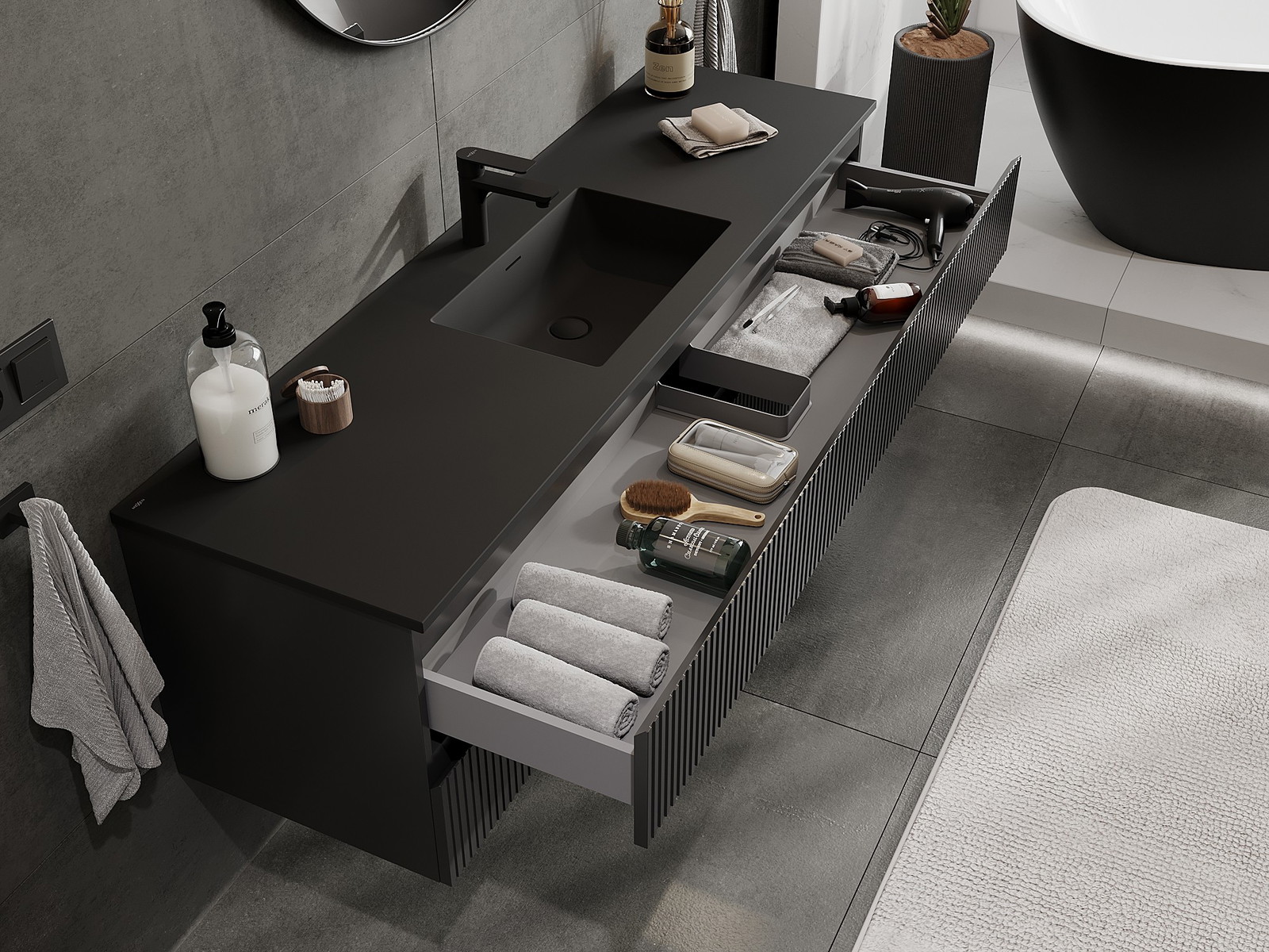 Нашите модулни мебели за баня могат да се комбинират в различни цветови конфигурации, което позволява пълна персонализация. Може да се избере както външният вид, така и функциите на отделните елементи, което позволява съчетаване на мебелите със собствените стилови и функционални предпочитания.