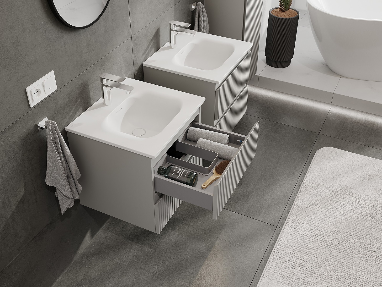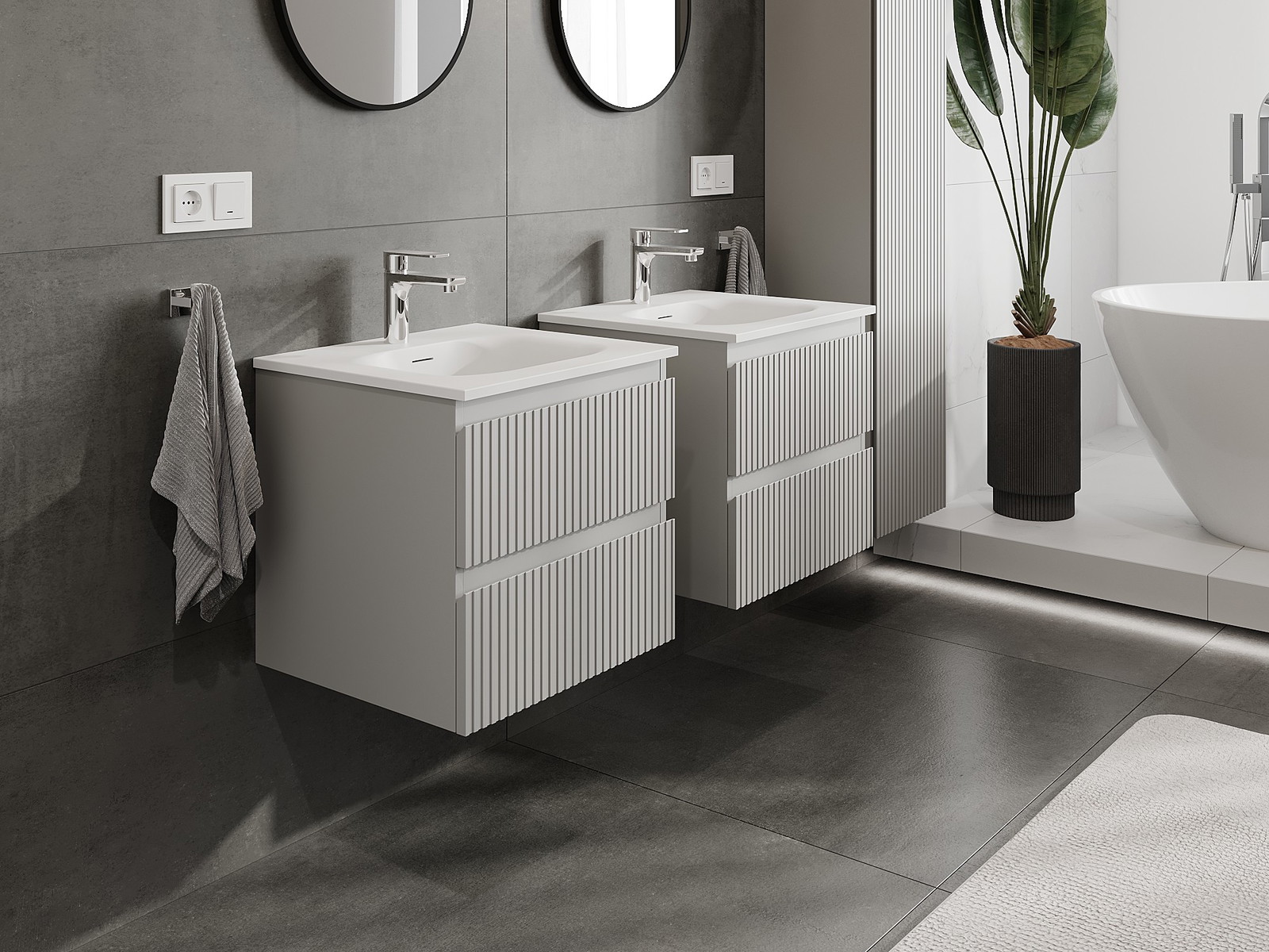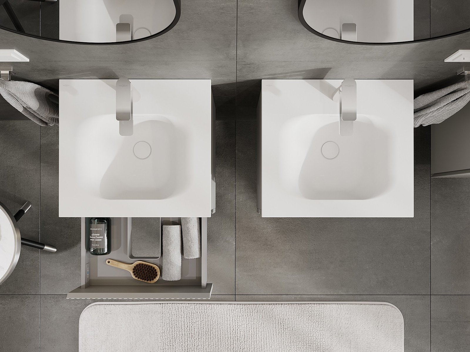 Нашите модулни мебели за баня могат да се комбинират в различни цветови конфигурации, което позволява пълна персонализация. Може да се избере както външният вид, така и функциите на отделните елементи, което позволява съчетаване на мебелите със собствените стилови и функционални предпочитания.
