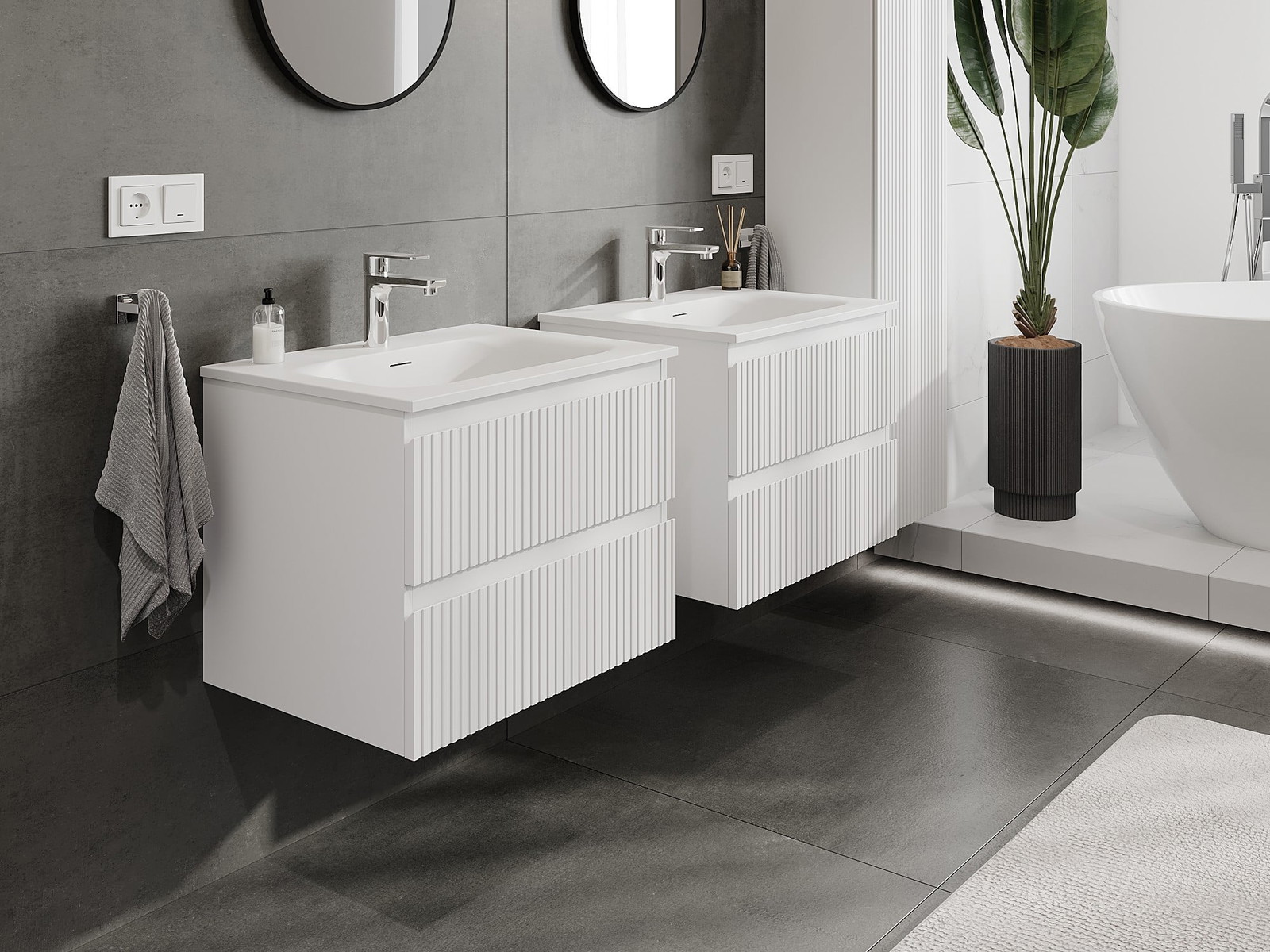 Нашите модулни мебели за баня могат да се комбинират в различни цветови конфигурации, което позволява пълна персонализация. Може да се избере както външният вид, така и функциите на отделните елементи, което позволява съчетаване на мебелите със собствените стилови и функционални предпочитания.
