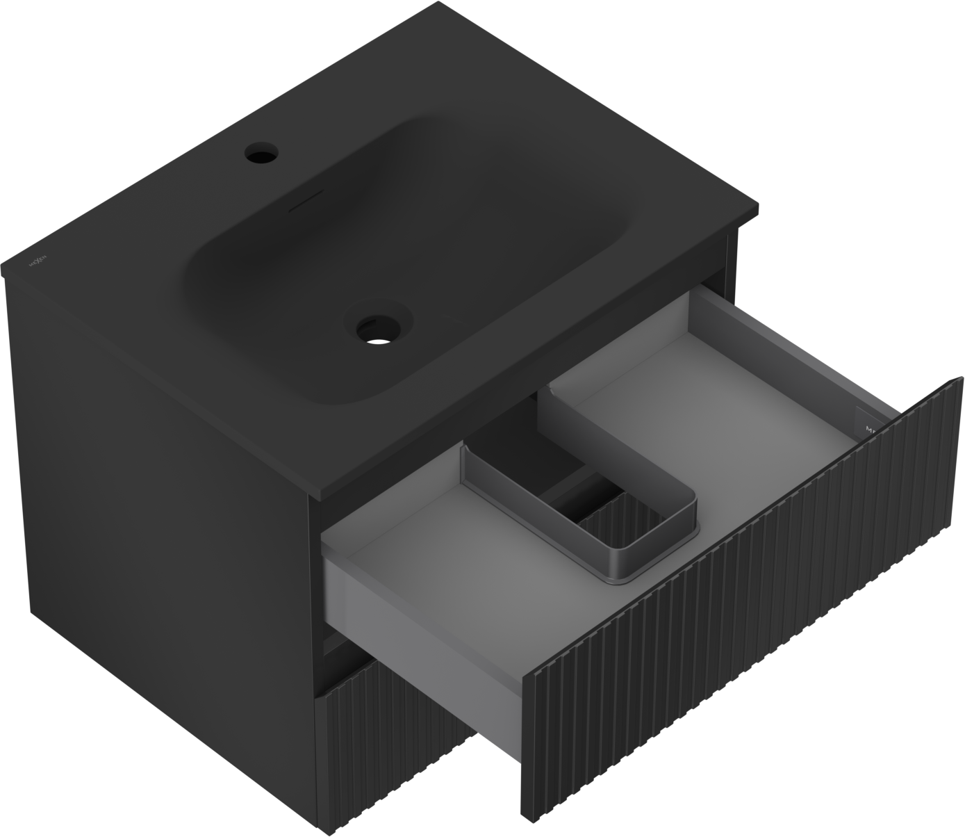 Изрезът в чекмеджето е проектиран по такъв начин, че да побере сифона, който е необходим в мивковите инсталации. Благодарение на това мебелът може да бъде монтиран напълно функционално, без да се налага отказване от пространството в чекмеджето заради инсталацията.