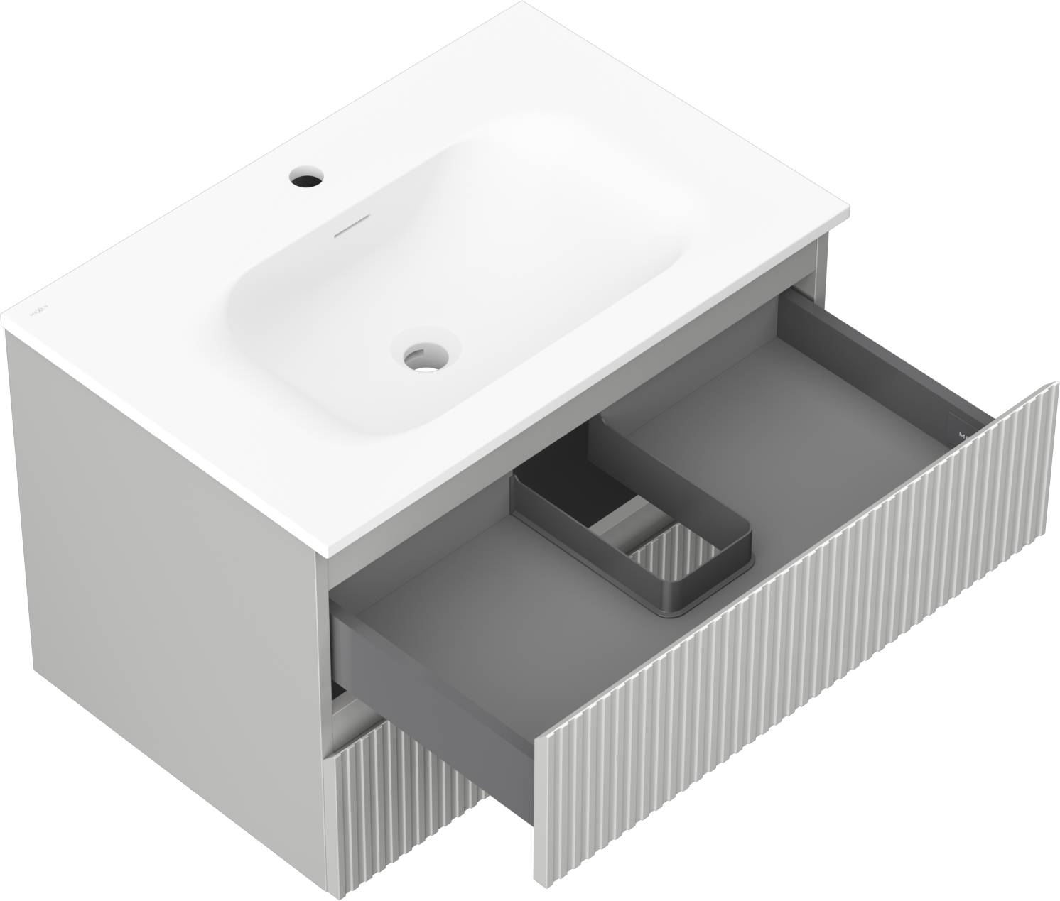 Изрезът в чекмеджето е проектиран по такъв начин, че да побере сифона, който е необходим в мивковите инсталации. Благодарение на това мебелът може да бъде монтиран напълно функционално, без да се налага отказване от пространството в чекмеджето заради инсталацията.