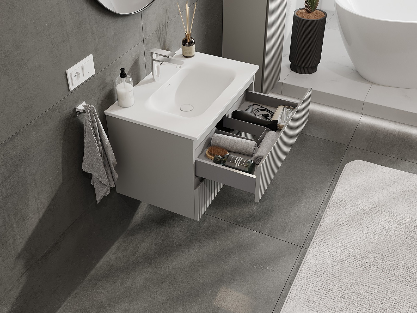 Корпусът на шкафа се доставя напълно сглобен, което означава максимално удобство и спестяване на време. Не е нужно да губите часове за сглобяване на мебела – просто го монтирайте на избраното място в банята. Това е идеалното решение за хора, които ценят бързия монтаж и незабавния ефект.