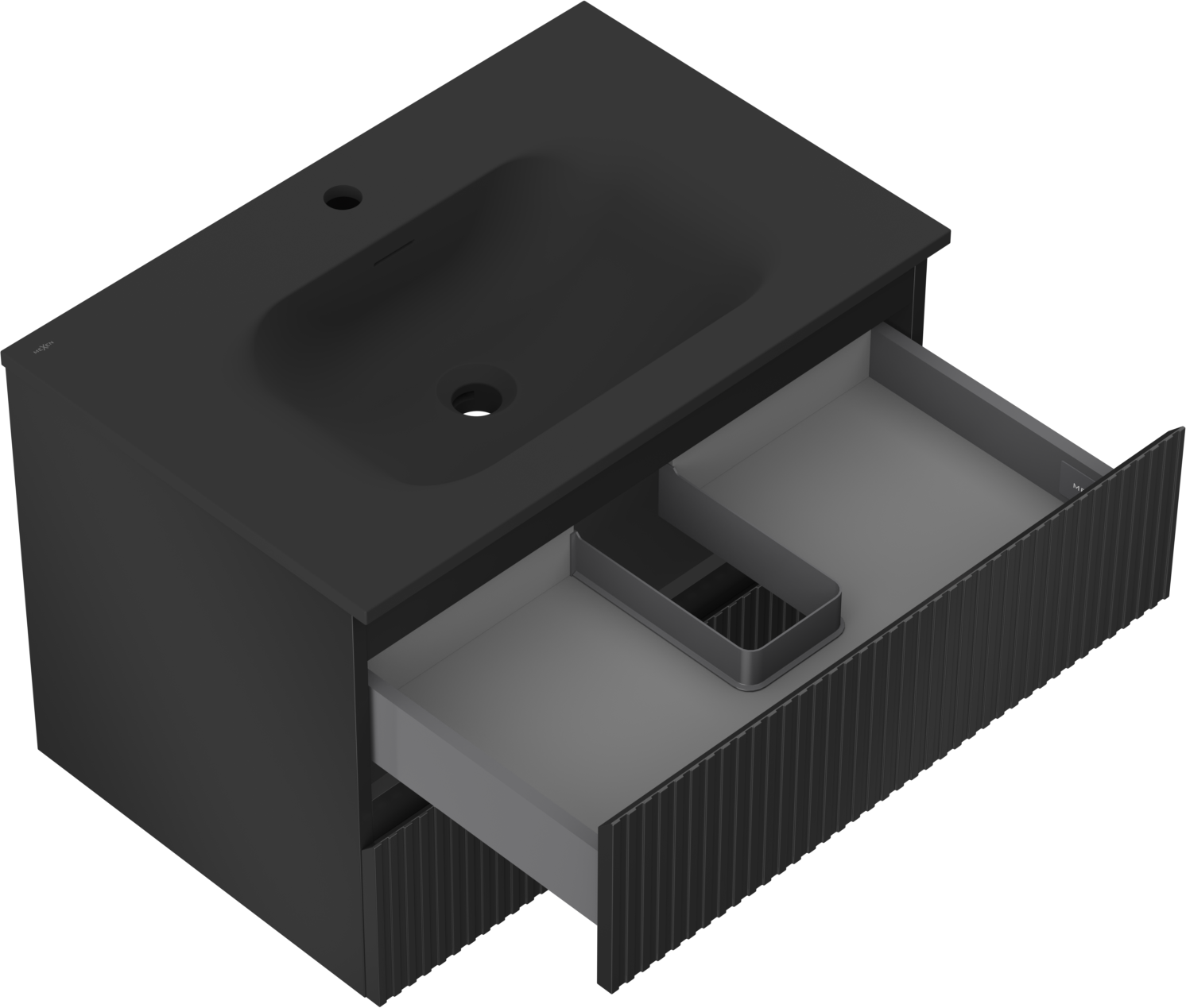 Изрезът в чекмеджето е проектиран по такъв начин, че да побере сифона, който е необходим в мивковите инсталации. Благодарение на това мебелът може да бъде монтиран напълно функционално, без да се налага отказване от пространството в чекмеджето заради инсталацията.