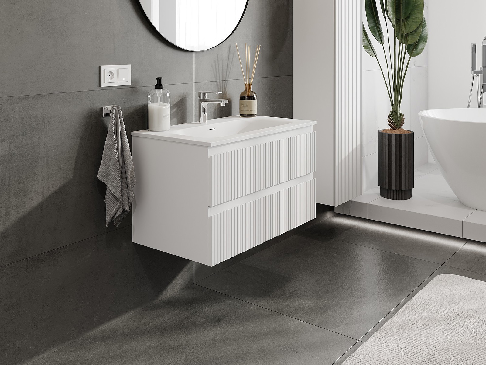 Корпусът на шкафа се доставя напълно сглобен, което означава максимално удобство и спестяване на време. Не е нужно да губите часове за сглобяване на мебела – просто го монтирайте на избраното място в банята. Това е идеалното решение за хора, които ценят бързия монтаж и незабавния ефект.