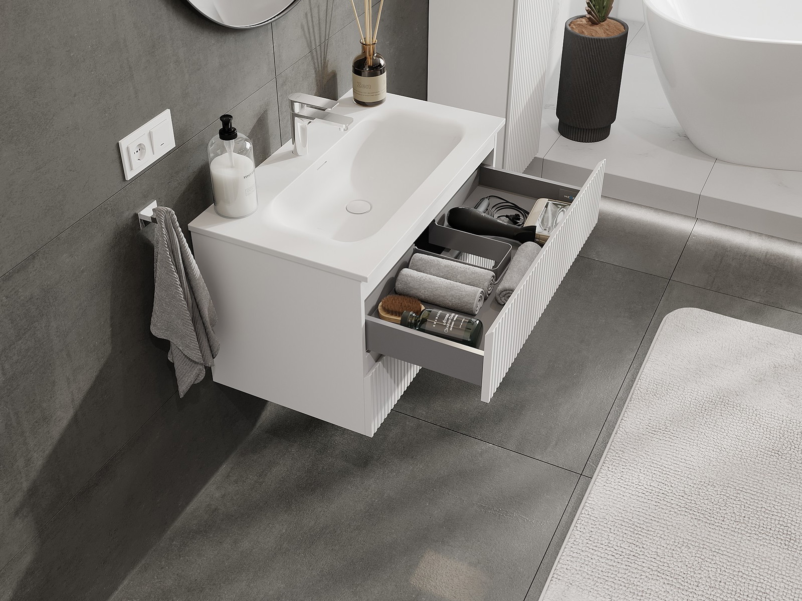 Нашите модулни мебели за баня могат да се комбинират в различни цветови конфигурации, което позволява пълна персонализация. Може да се избере както външният вид, така и функциите на отделните елементи, което позволява съчетаване на мебелите със собствените стилови и функционални предпочитания.
