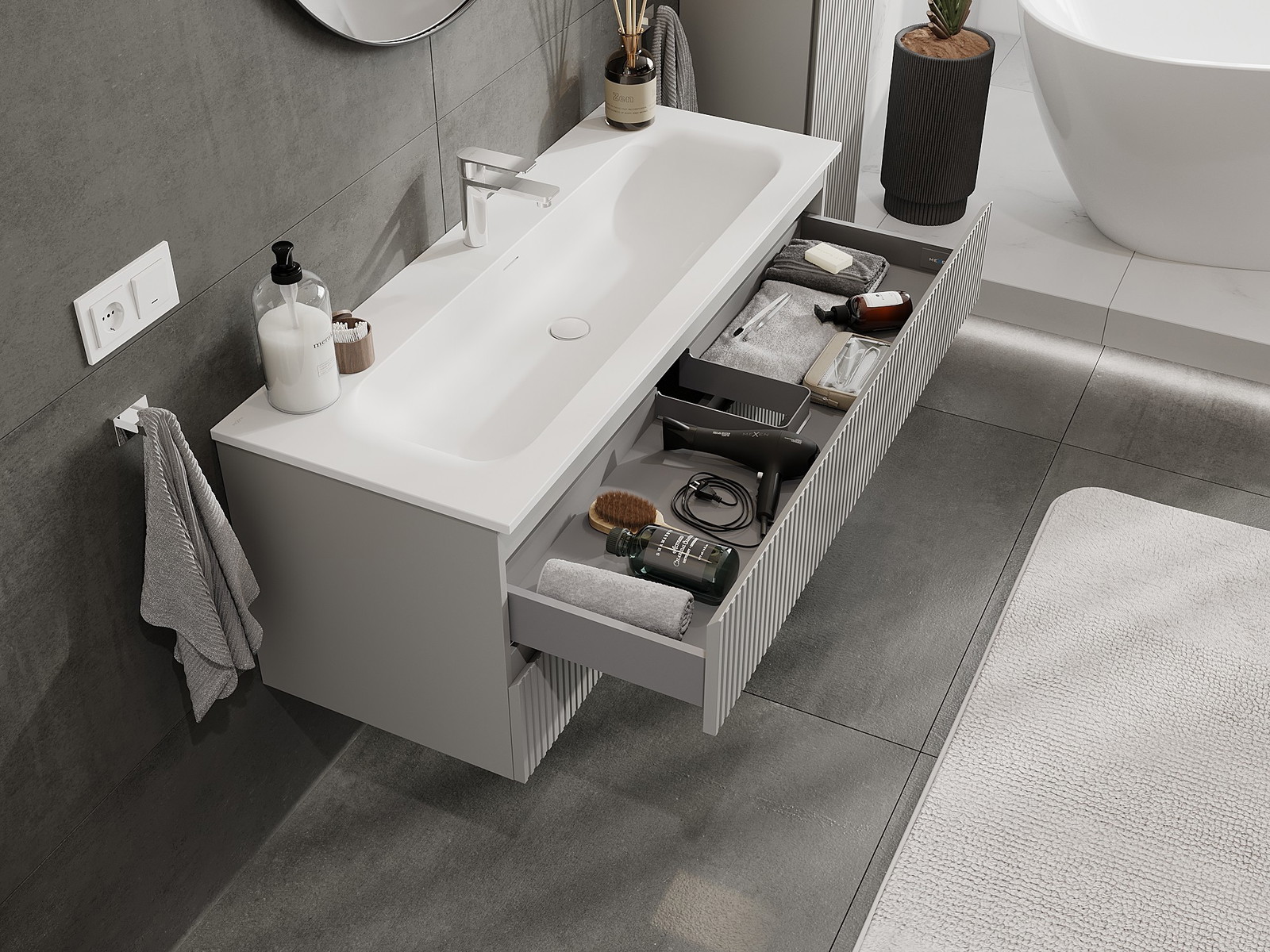 Нашите модулни мебели за баня могат да се комбинират в различни цветови конфигурации, което позволява пълна персонализация. Може да се избере както външният вид, така и функциите на отделните елементи, което позволява съчетаване на мебелите със собствените стилови и функционални предпочитания.